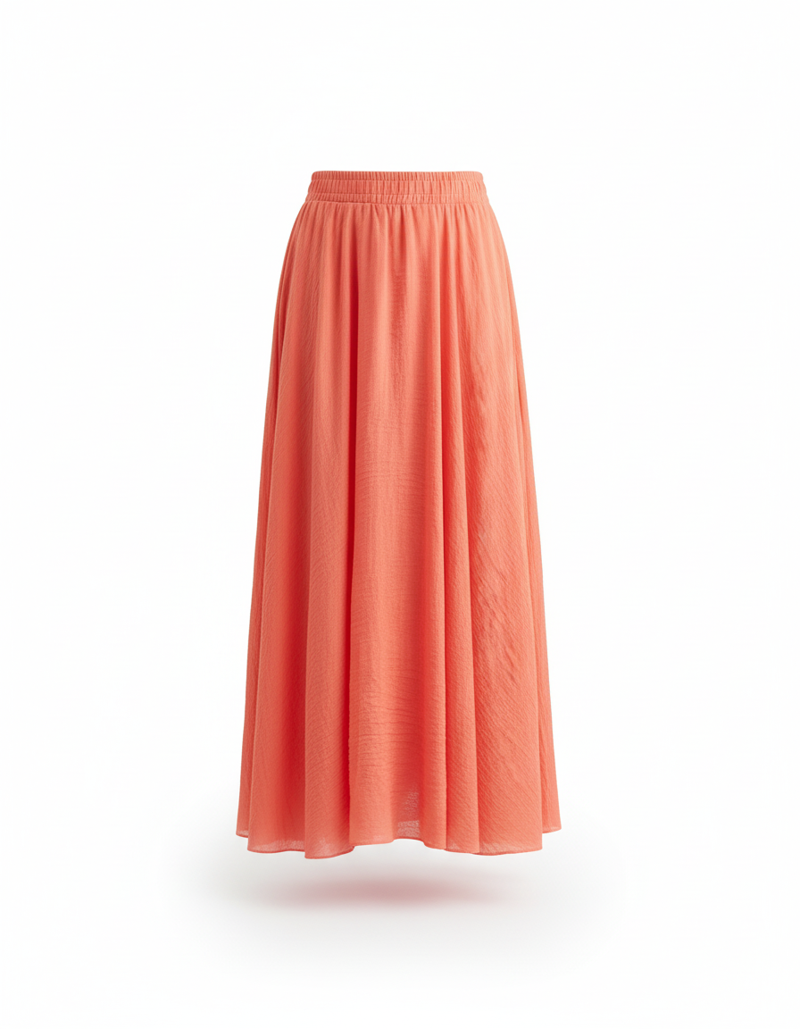 L'Éclat Corail : La Jupe Longue Évasée, Symbole de Liberté Élégante
