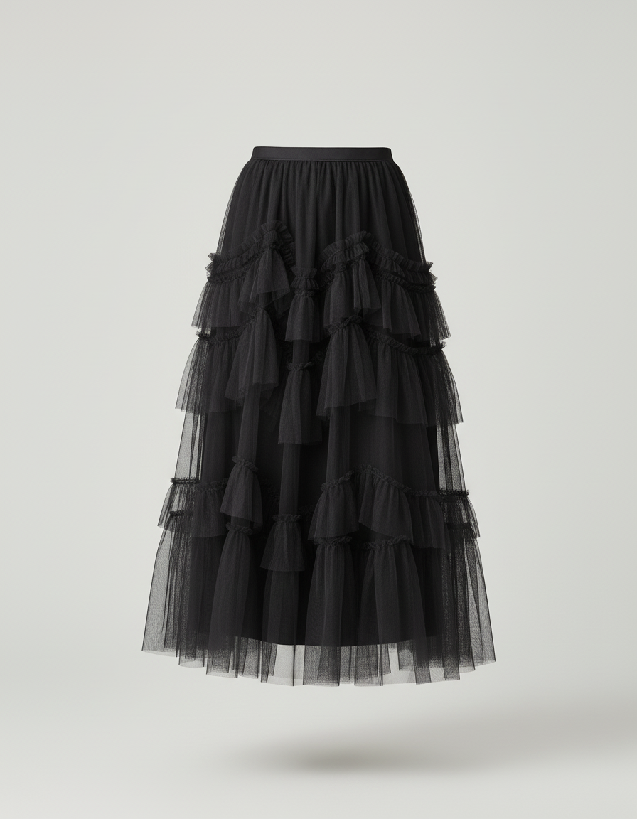 Élégance Dramatique : La Jupe Longue Tall en Tulle Volanté