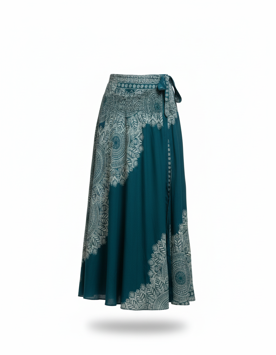 Découvrez notre Jupe Longue Femme Verte, une pièce maîtresse qui allie l'élégance intemporelle à un confort absolu. Confectionnée dans un coton fluide de première qualité, son motif délicat et sa coupe portefeuille inspirée des saris indiens offrent une silhouette gracieuse et modulable. Du brunch décontracté avec un simple débardeur blanc et des sandales, à une soirée estivale rehaussée d'un top en soie et de bijoux dorés, elle s'adapte à toutes vos envies, sublimant chaque occasion d'une touche d'exotisme raffiné.