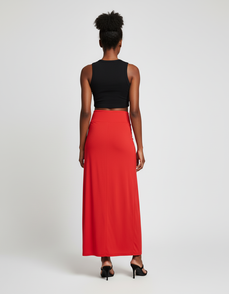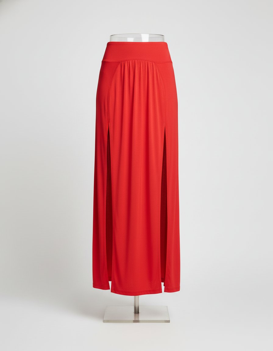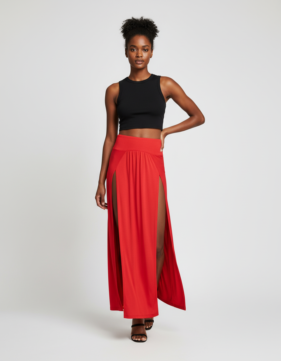Jupe Longue Fendue Coton : L'Éclat du Rouge, la Liberté du Mouvement