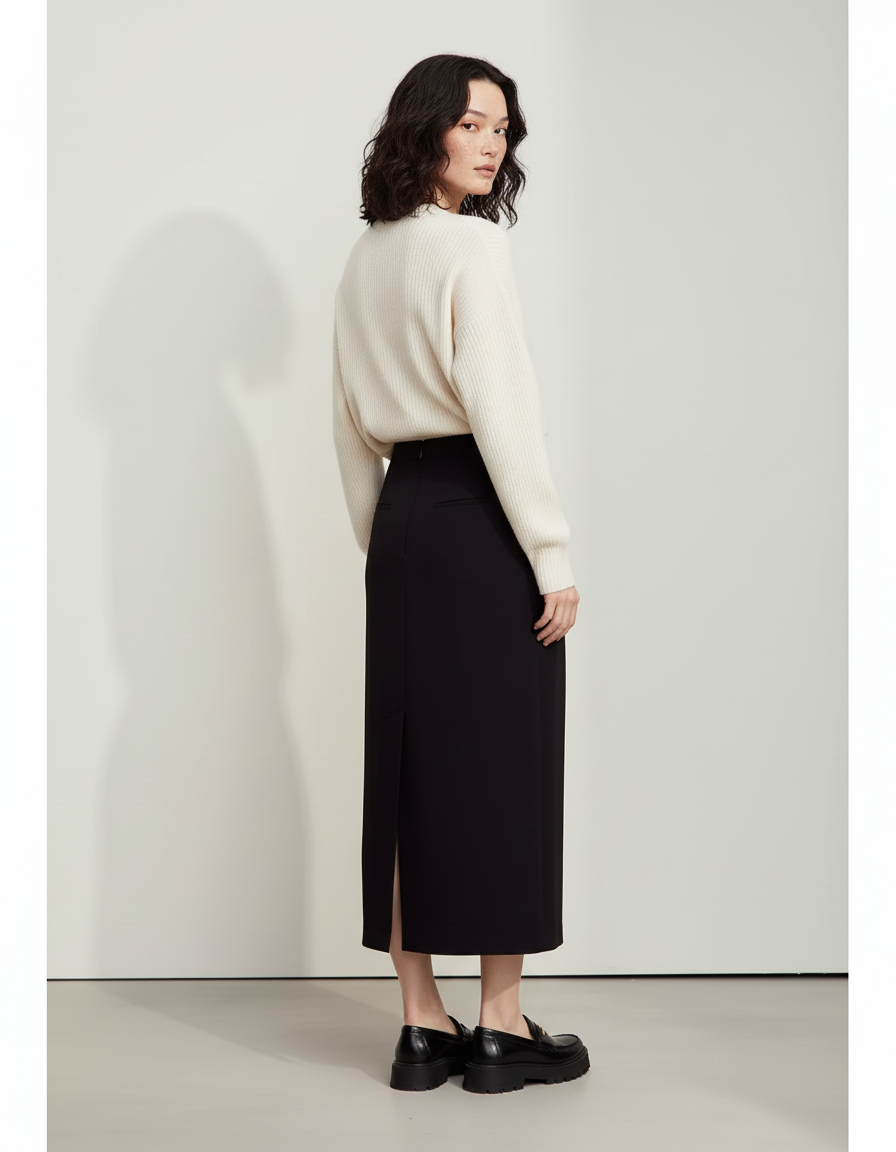Découvrez la Jupe Longue Fendue Hiver, une pièce maîtresse conçue pour la femme moderne qui ne transige ni sur le style ni sur le confort. Idéale pour celles qui recherchent une silhouette raffinée et intemporelle durant les mois froids, cette jupe droite en pure laine noire est l'incarnation d'un luxe discret. Elle offre une chaleur enveloppante et une tenue impeccable, vous permettant de naviguer entre vos journées chargées et vos soirées élégantes avec une aisance absolue. C'est l'investissement parfait pour une garde-robe hivernale sophistiquée et fonctionnelle.
