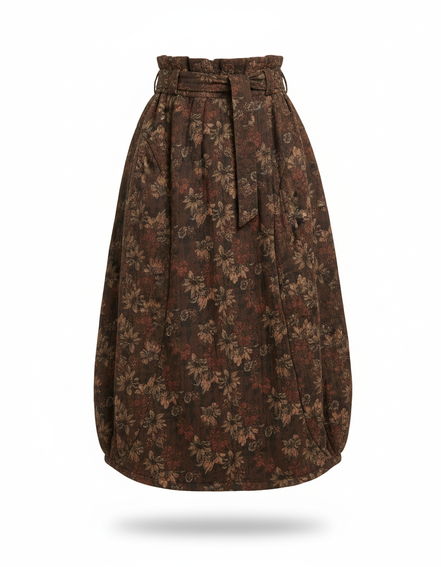 Embrace the charm of autumn with our elegant long floral skirt, perfect for a stylish seasonal look.