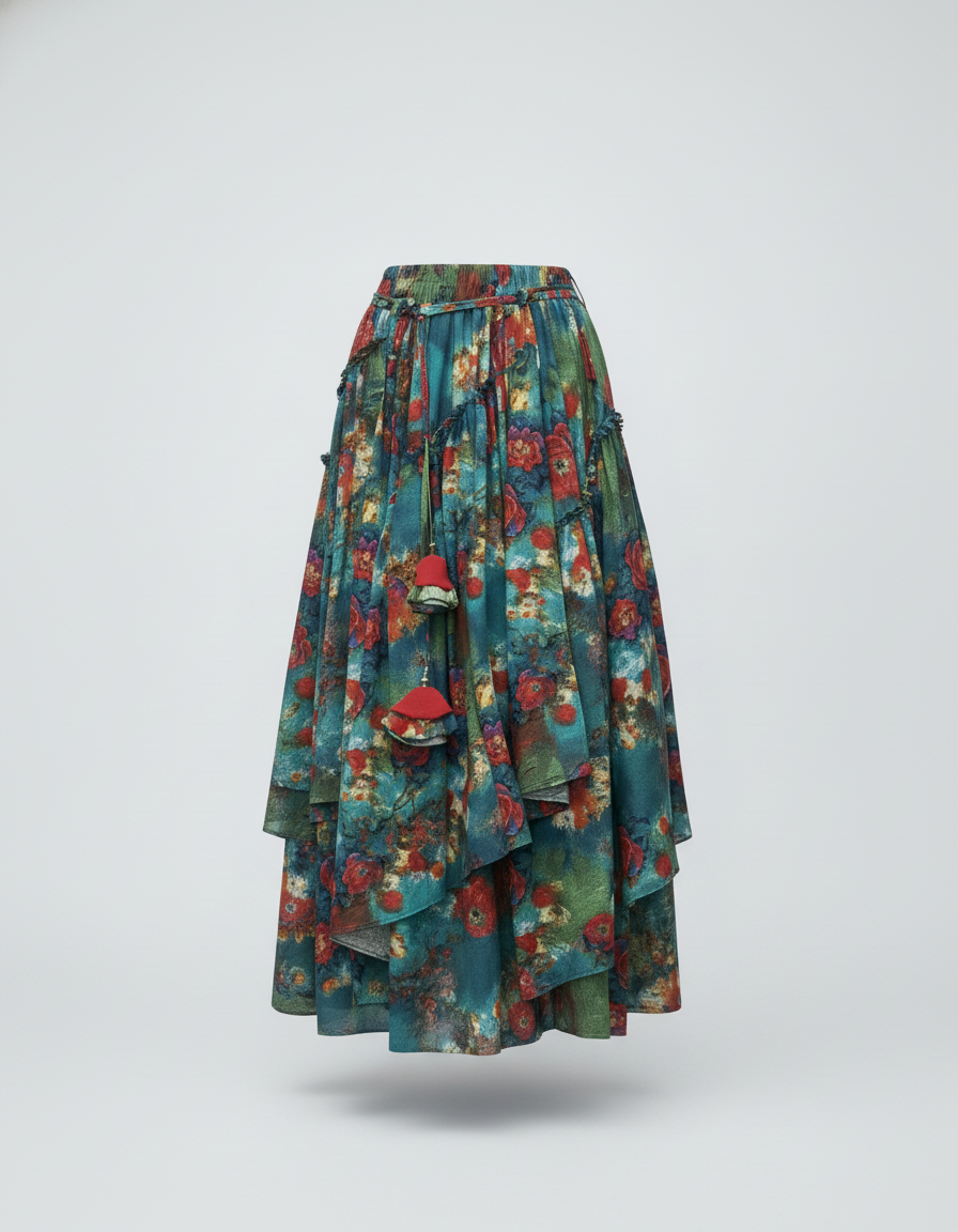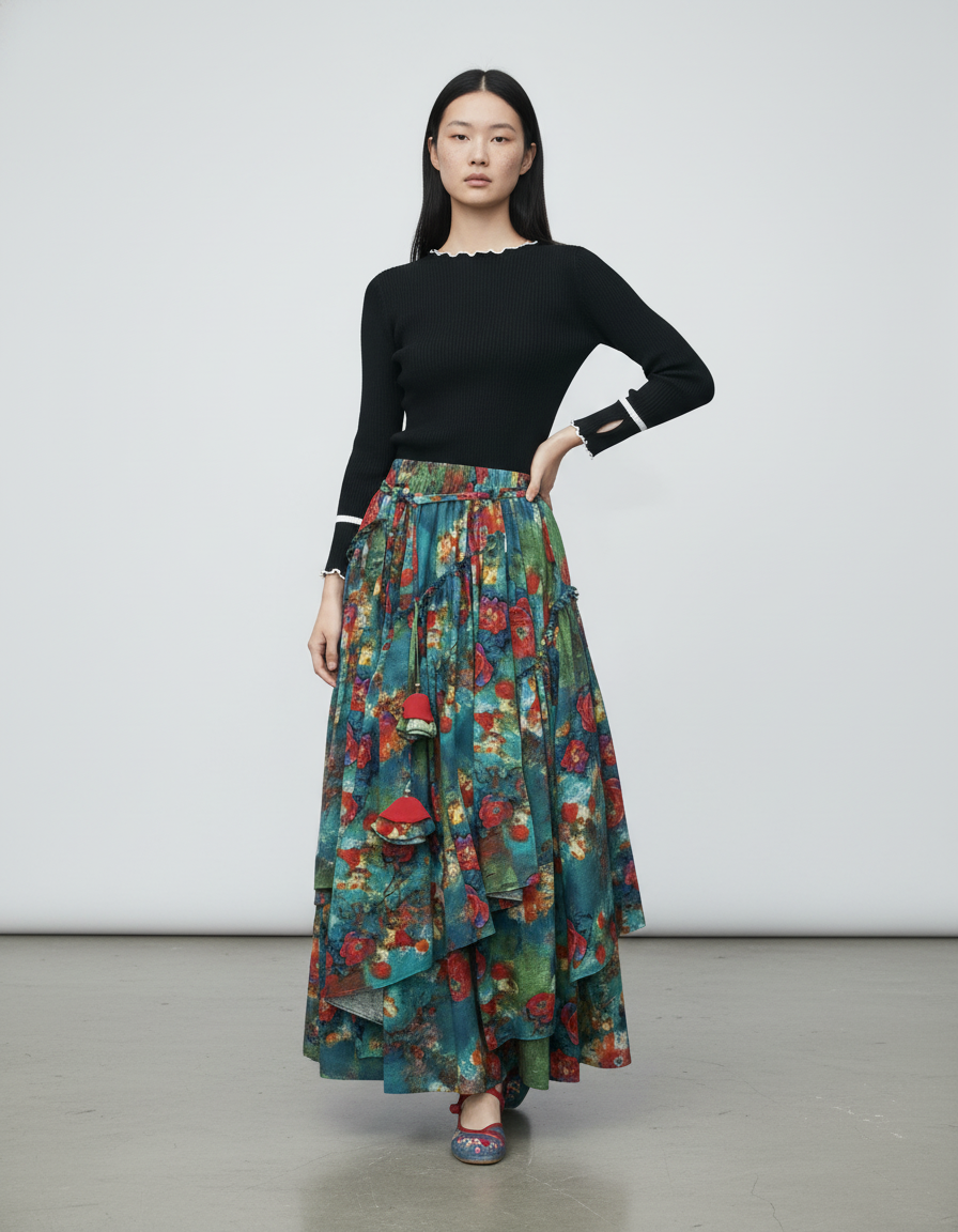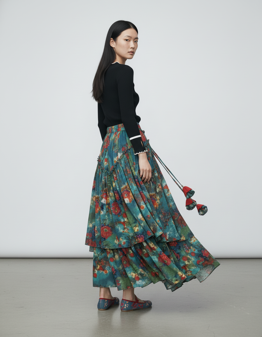 La Jupe Longue Fleurie Bohème Fluide : L'Éclat Artistique à Chaque Mouvement