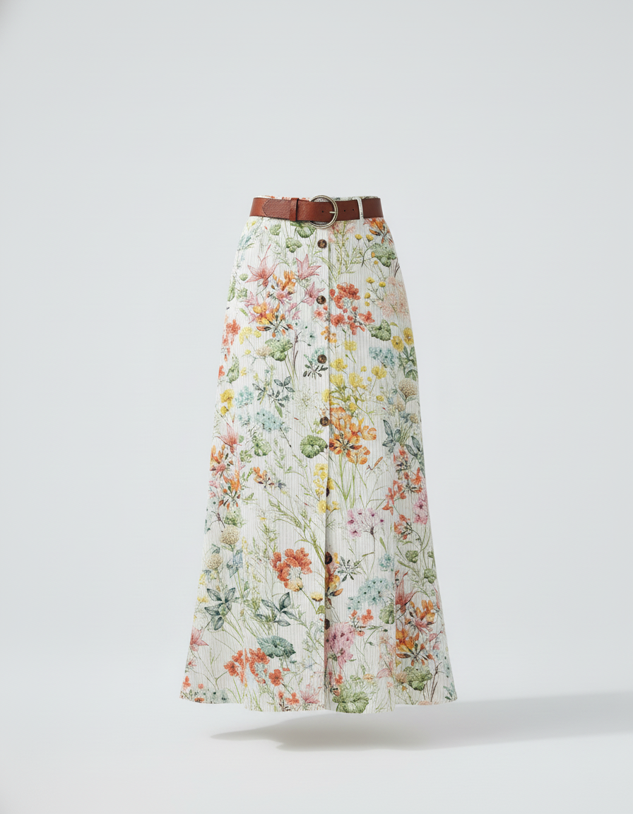 L'Élégance Naturelle Redéfinie : La Jupe Longue Fleurie Boutonnée Fluide
