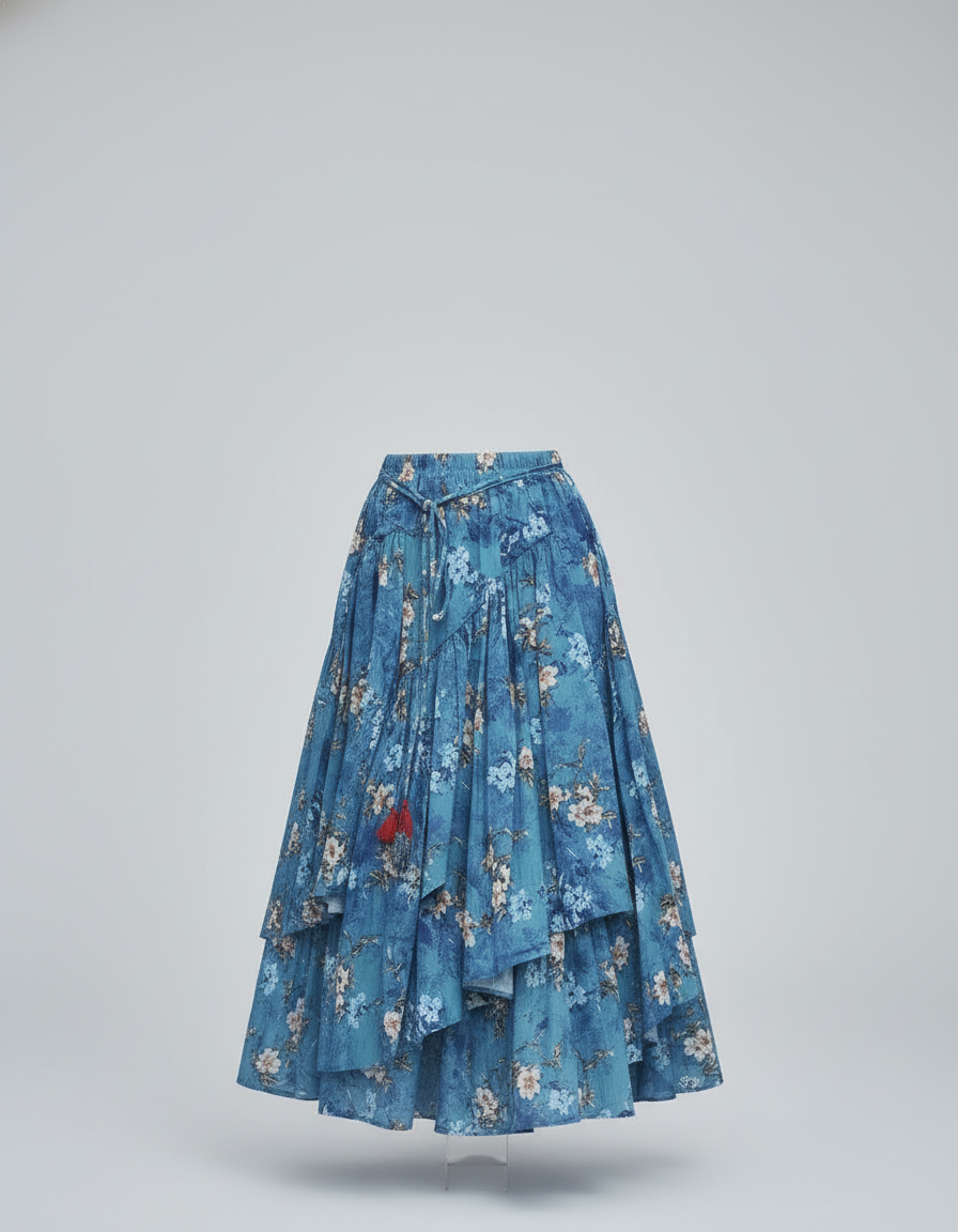 La Jupe Longue Florale Bleue Bohème : L'Élégance Décontractée Réinventée
