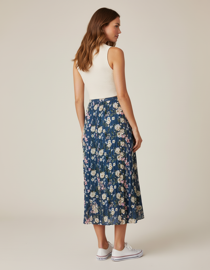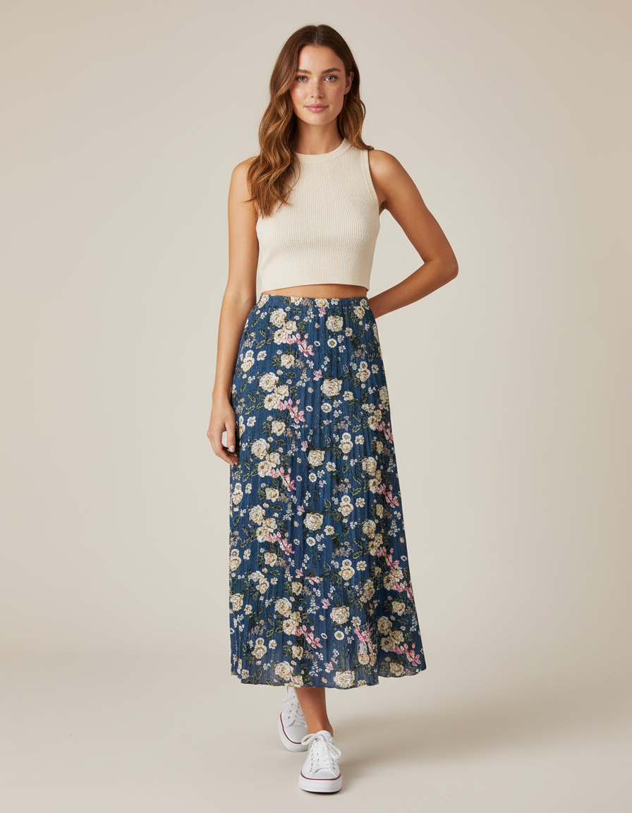 La Jupe Longue Florale Plissée Fluide : L'Élégance Sans Effort