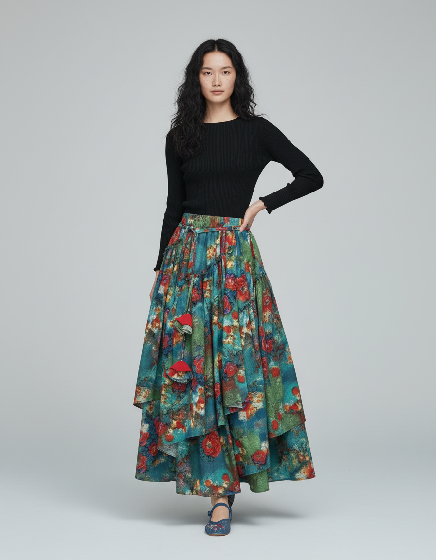 Jupe Longue Florale Superposée Bohème : L'Élégance Décontractée Réinventée