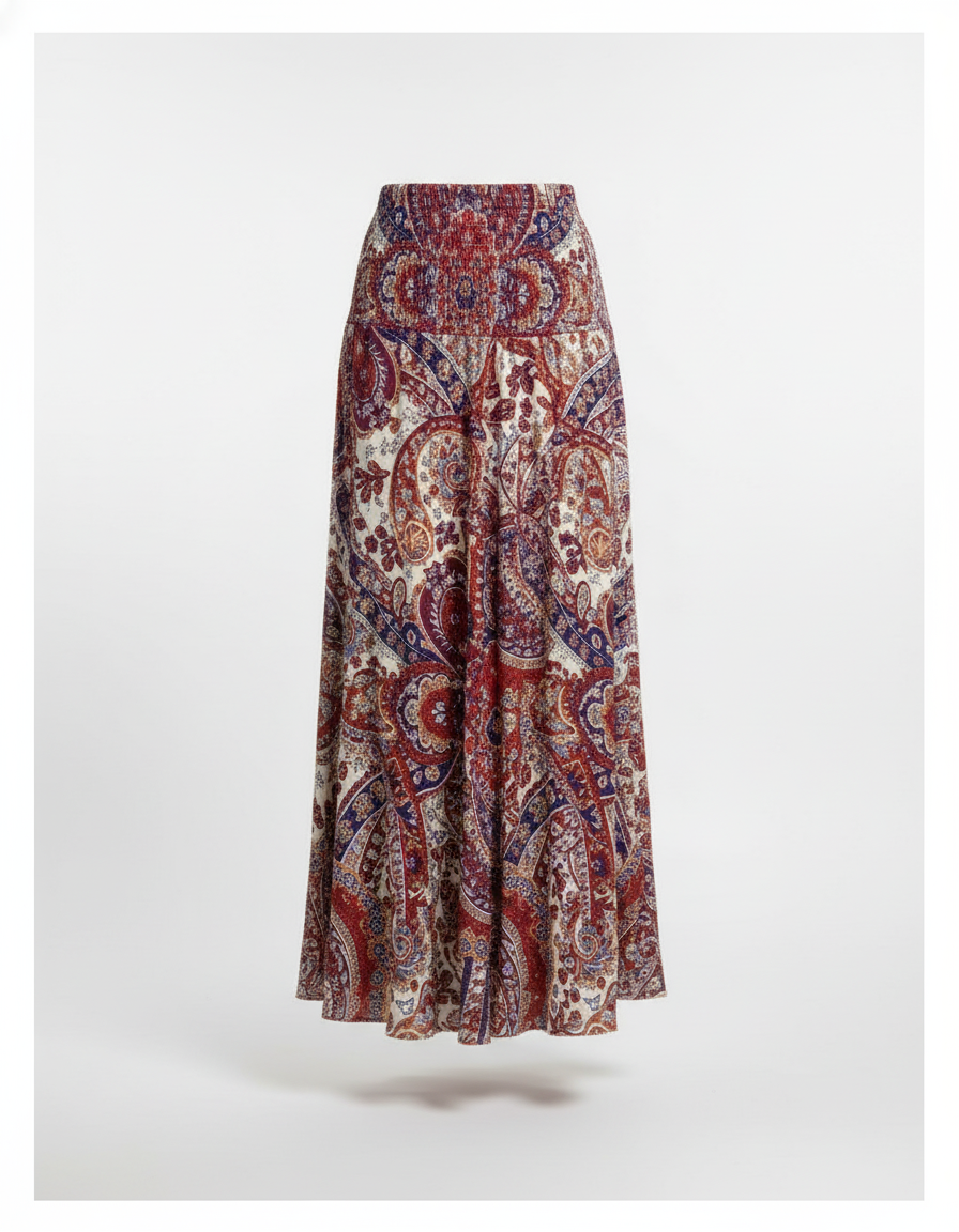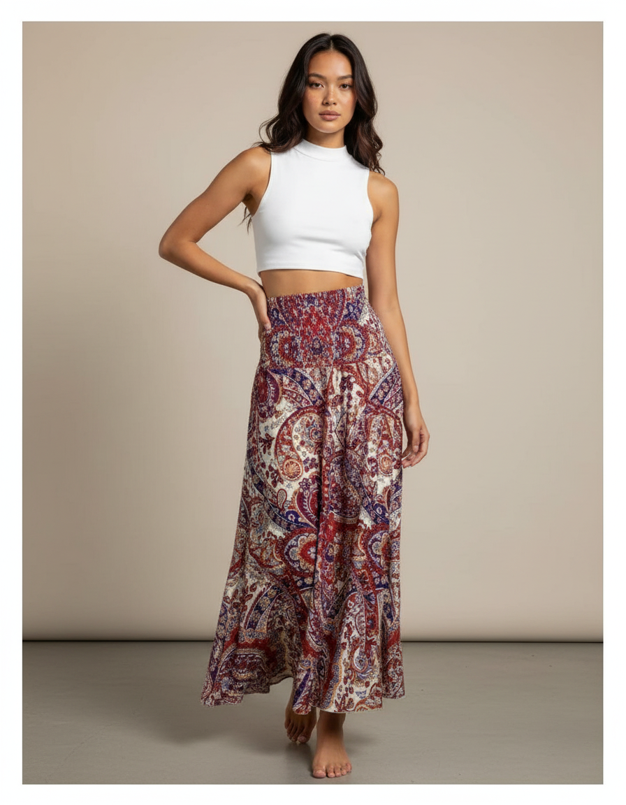 Jupe Longue Fluide Imprimée Bohème Chic à motif cachemire