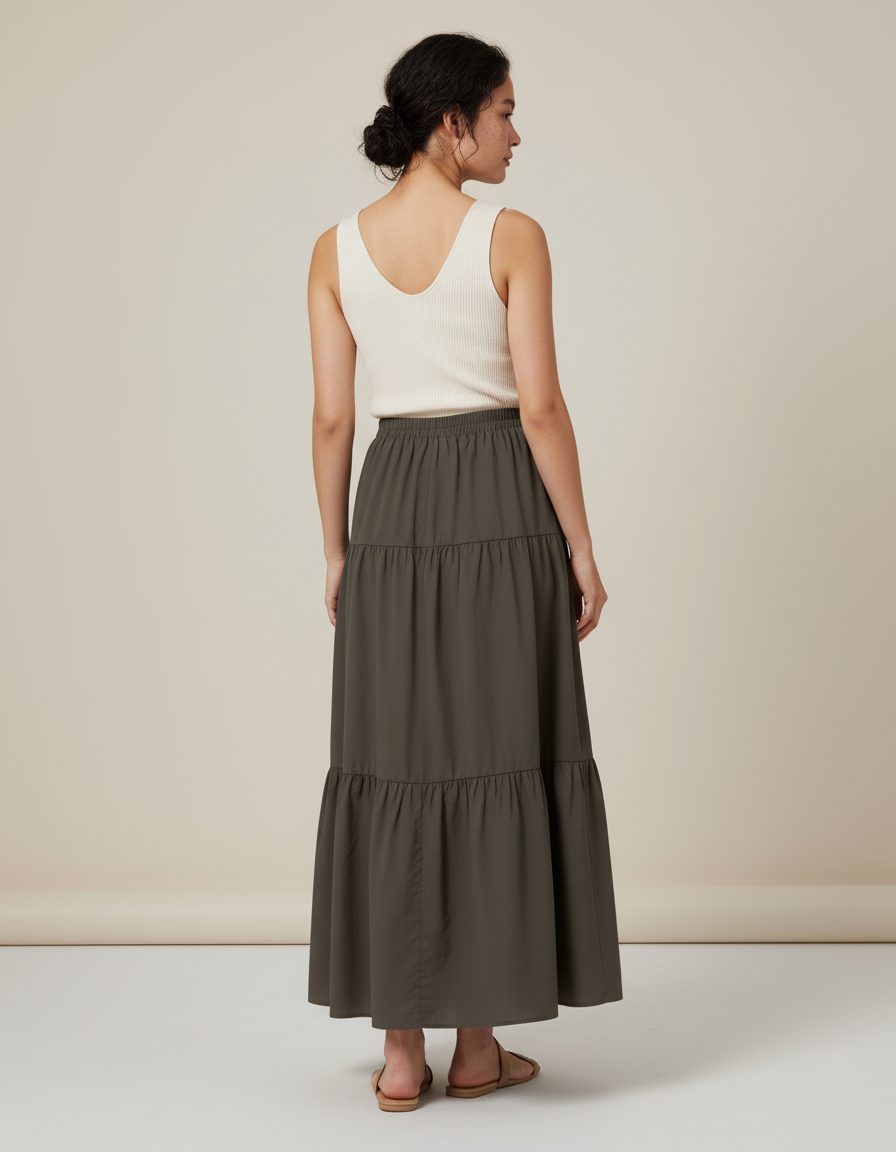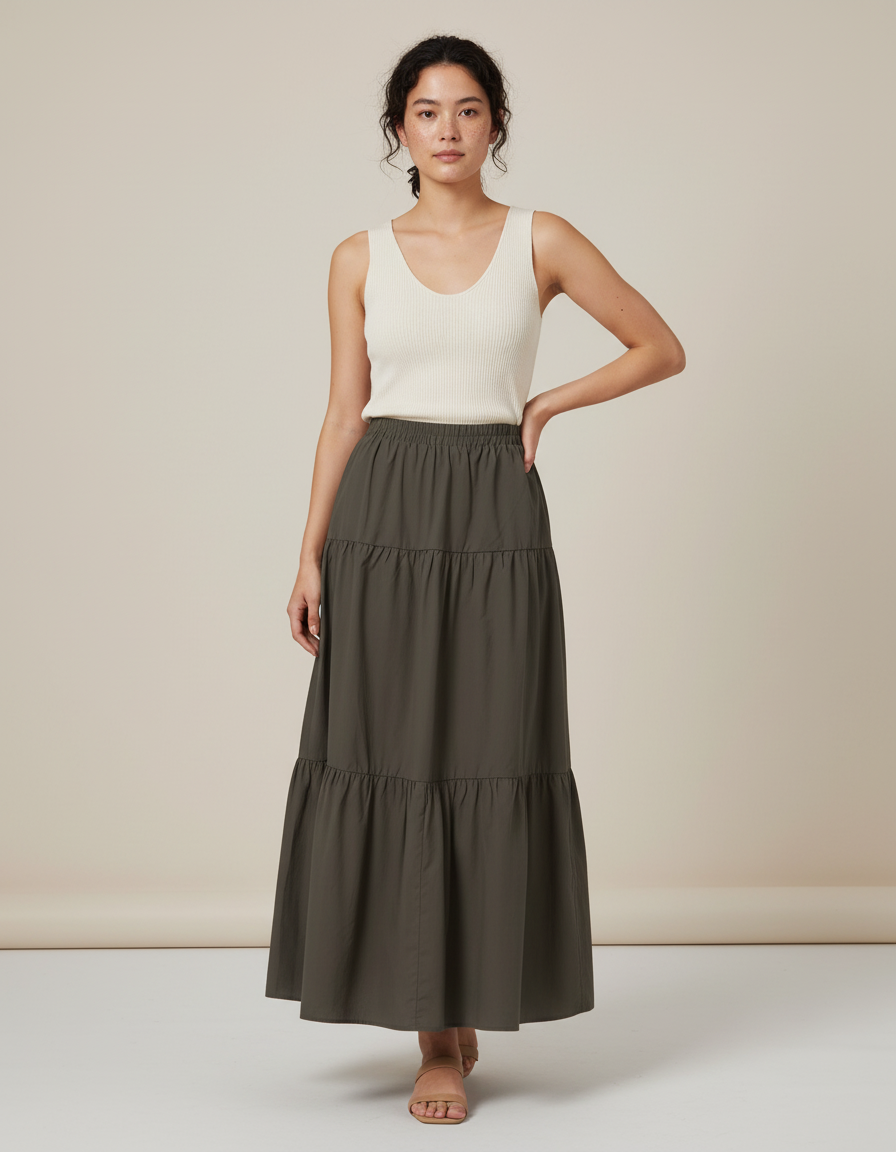 Jupe Longue Fluide Kaki Étages : L'Élégance Décontractée Réinventée