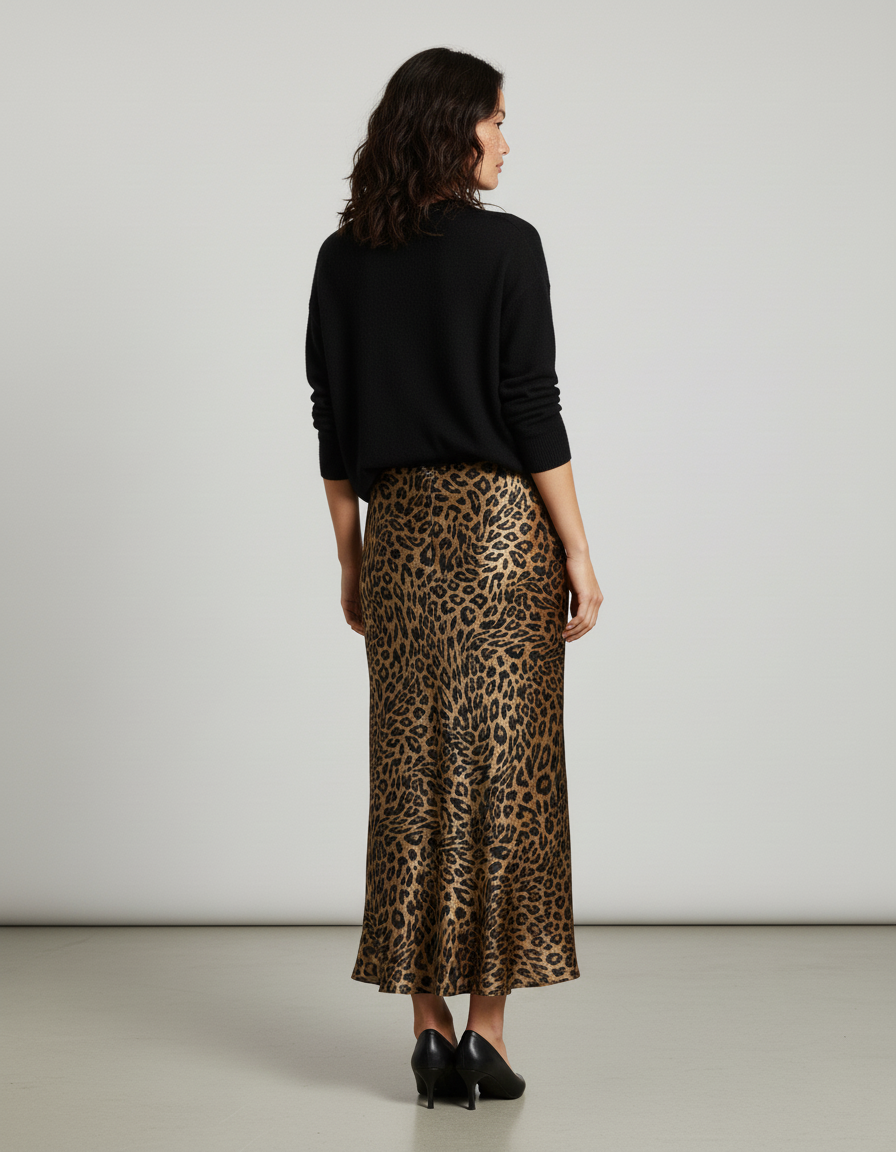 Découvrez l'Élégance Audacieuse de Notre Jupe Longue Fluide Satinée Imprimé Léopard
