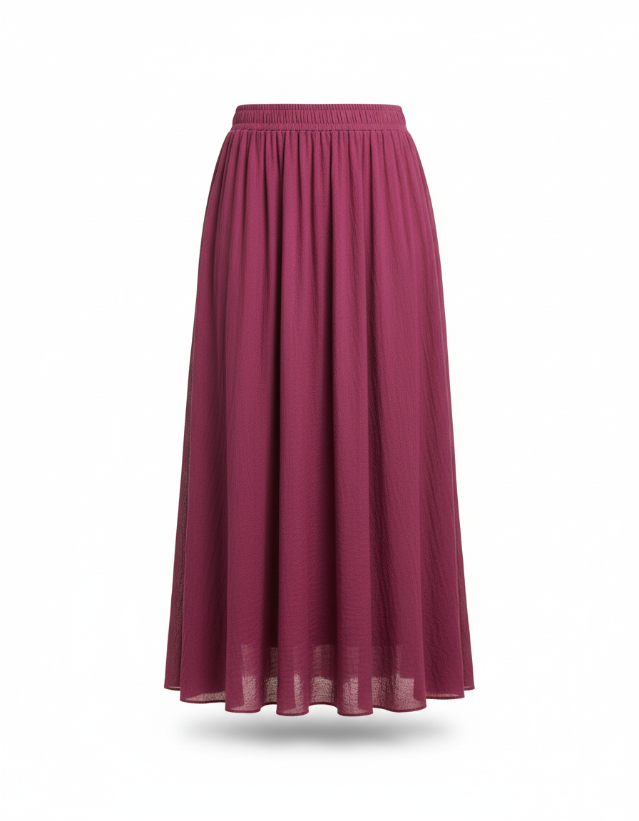 Découvrez notre jupe longue framboise, parfaite pour un style décontracté et élégant.