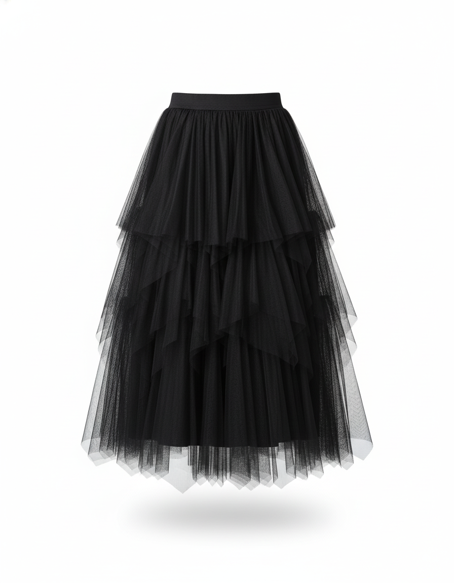 Adoptez l'allure d'une élégance audacieuse et aérienne avec notre Jupe Longue Froufrou Tulle. Conçue pour la femme moderne qui ne transige pas sur le style, cette pièce maîtresse transforme chaque pas en une déclaration de grâce. Sa silhouette ample et ses volants délicats en tulle noir offrent une fluidité inégalée, idéale pour celles qui souhaitent exprimer leur personnalité unique avec sophistication et une touche de fantaisie chic. Que ce soit pour un événement spécial ou pour rehausser votre quotidien, elle promet un confort absolu et un impact visuel saisissant.