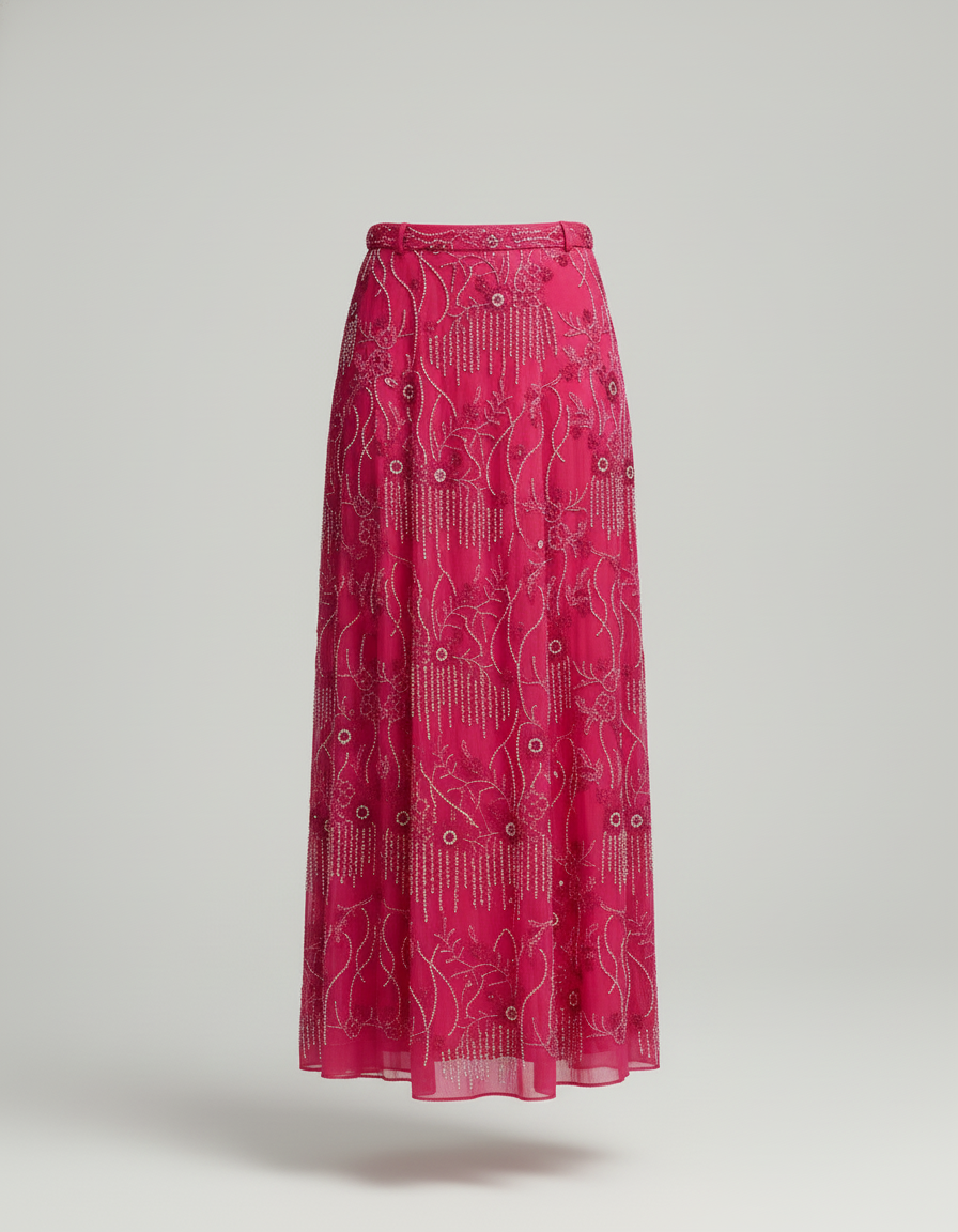Découvrez notre jupe longue fuchsia, une pièce élégante et étincelante pour toutes vos occasions spéciales.