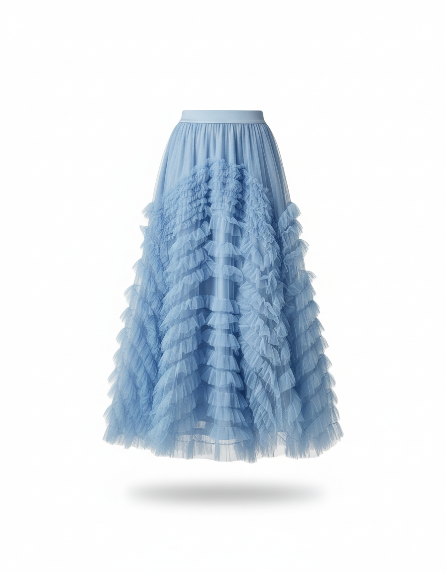 - Confectionnée en tulle léger avec de multiples volants délicats.
