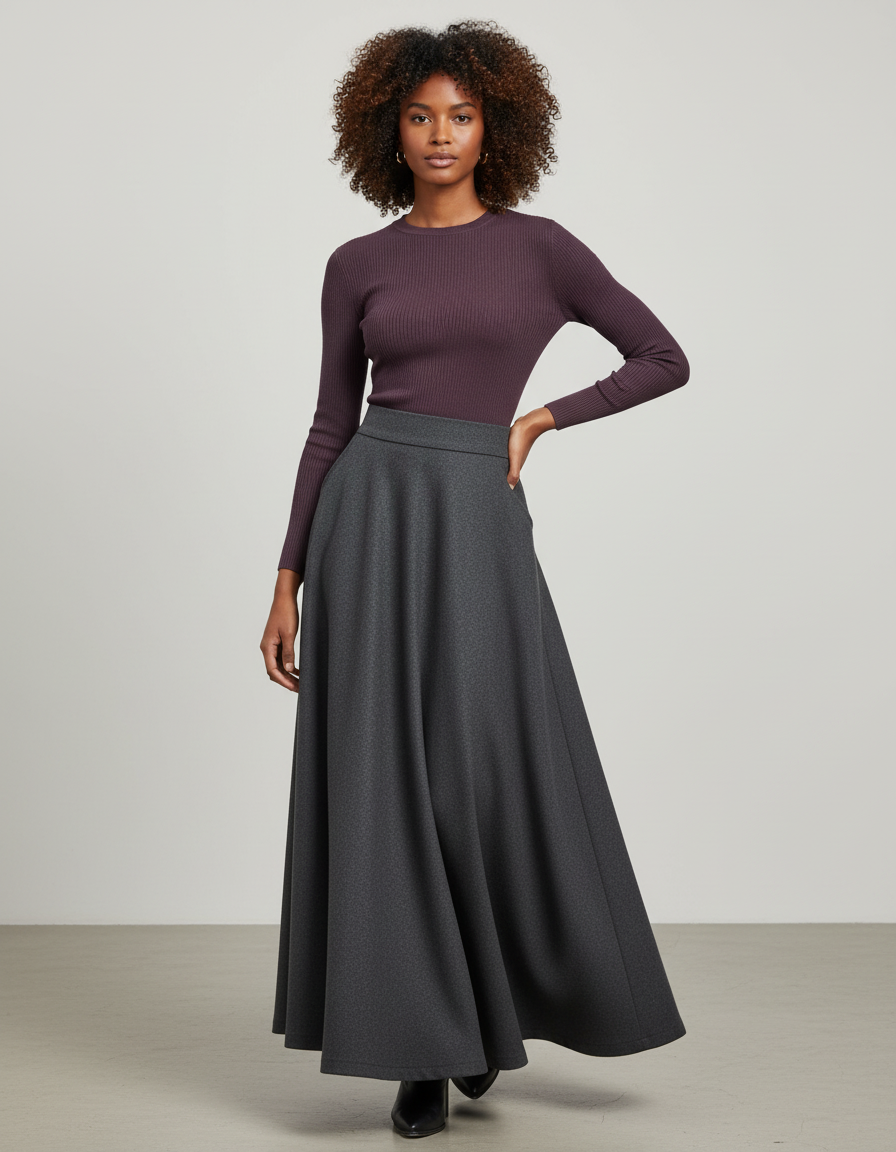 La Jupe Longue Gris Chiné : L'Élégance Hivernale Redéfinie