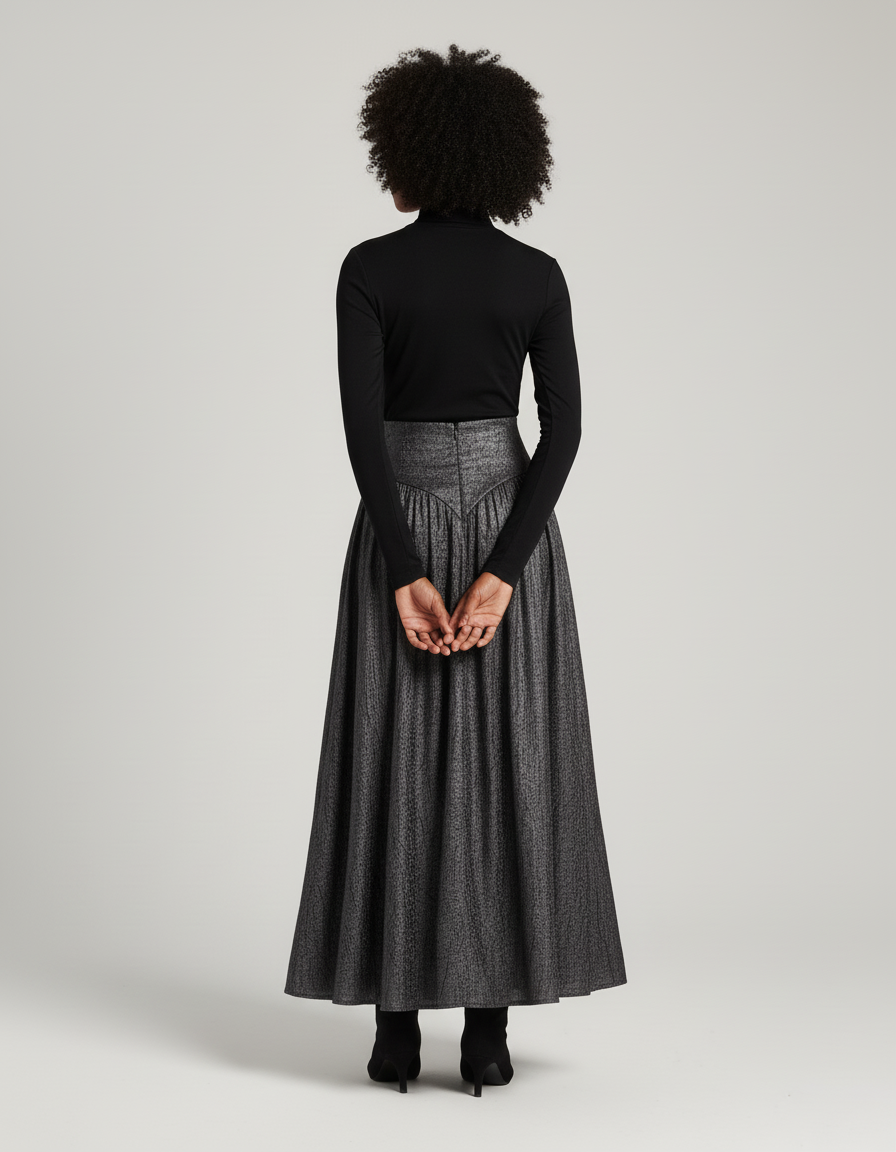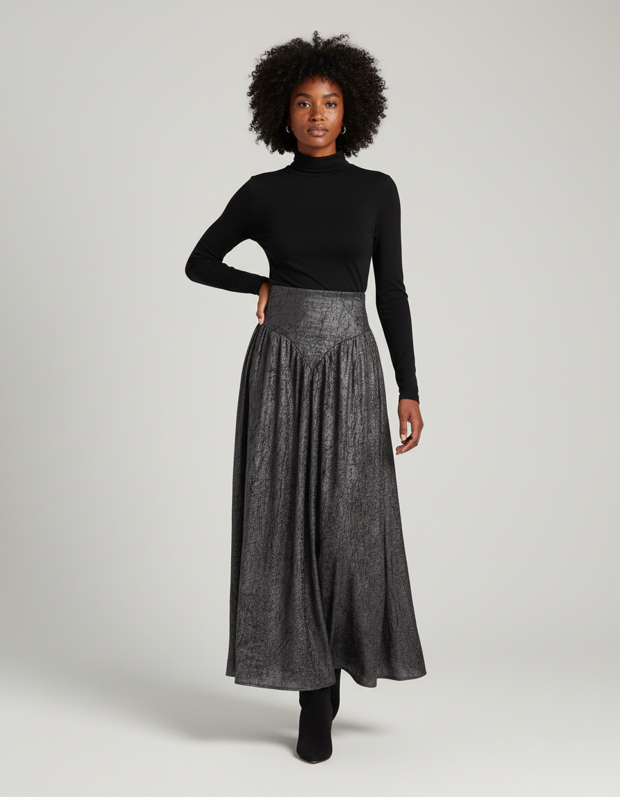 La Jupe Longue Gris Métallisé Plissée : L'Éclat de la Modernité