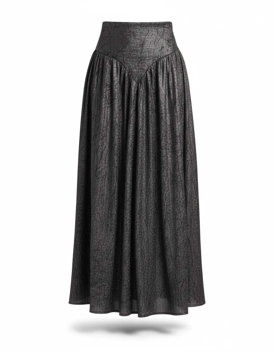 Jupe Longue Gris Métallisé Plissée Élégante