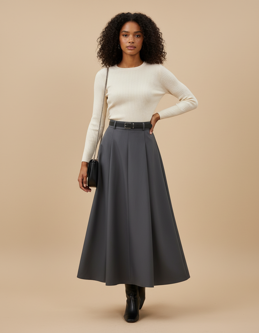 Jupe Longue Grise Évasée Élégante : L'Élégance Fluide au Quotidien