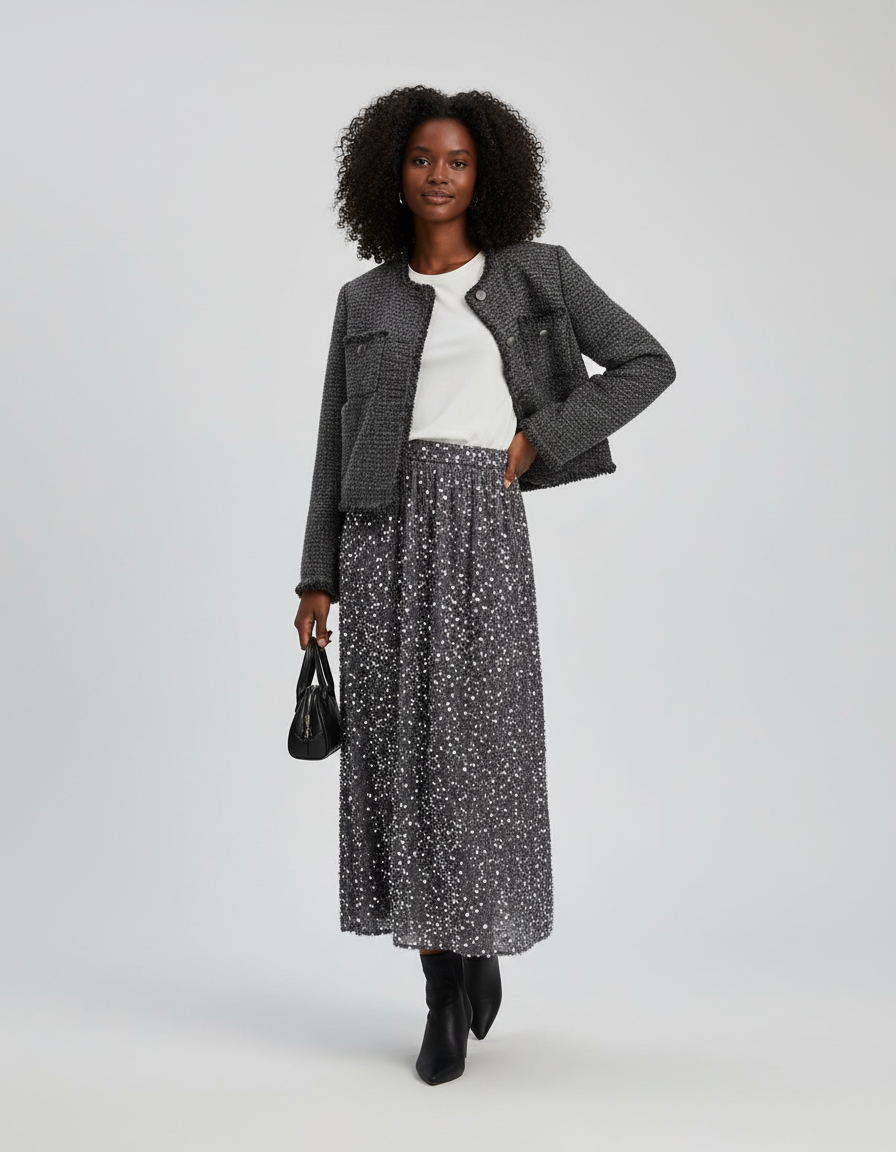 Usage de la Jupe Longue Grise Pailletée Élégante