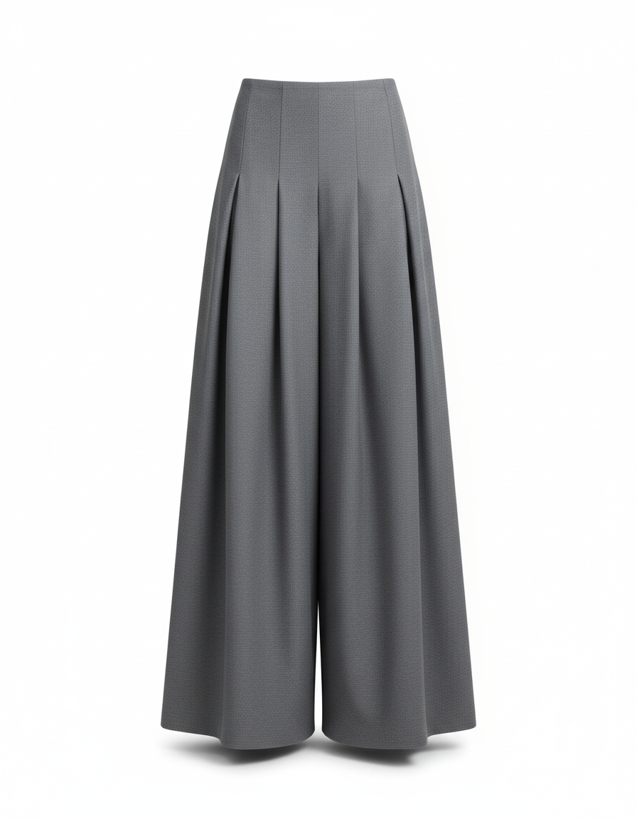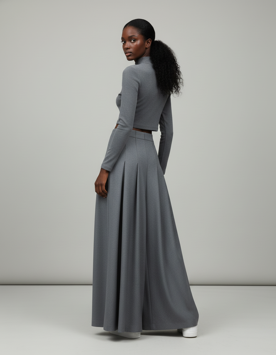 Découvrez notre Jupe Longue Plissée, une pièce maîtresse conçue pour la femme qui ne transige pas entre confort et raffinement. Taillée dans une somptueuse laine grise, sa coupe ample et aérienne offre une liberté de mouvement inégalée, enveloppant la silhouette avec une grâce discrète. C'est l'essence même du luxe au quotidien : une allure impeccable sans effort, idéale pour celles qui valorisent l'élégance intemporelle et une sophistication moderne dans leur garde-robe.