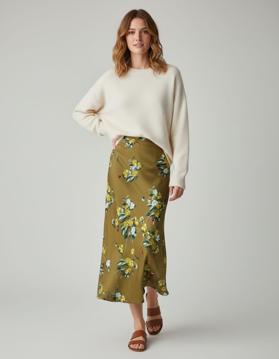 Sa palette colorée et son imprimé "fleurie" en font une pièce maîtresse facile à styliser pour toutes les occasions. Pour une allure décontractée chic, associez-la à un pull en maille douce, comme le modèle crème de la photo, et des sandales plates. En soirée, transformez-la avec un top en soie, des talons fins et quelques bijoux délicats pour un look sophistiqué et captivant. Au bureau, optez pour une chemise ajustée et des mocassins pour une touche d'élégance professionnelle. Polyvalente et intemporelle, elle s'adapte à chaque moment de votre vie, affirmant votre style avec panache et originalité.