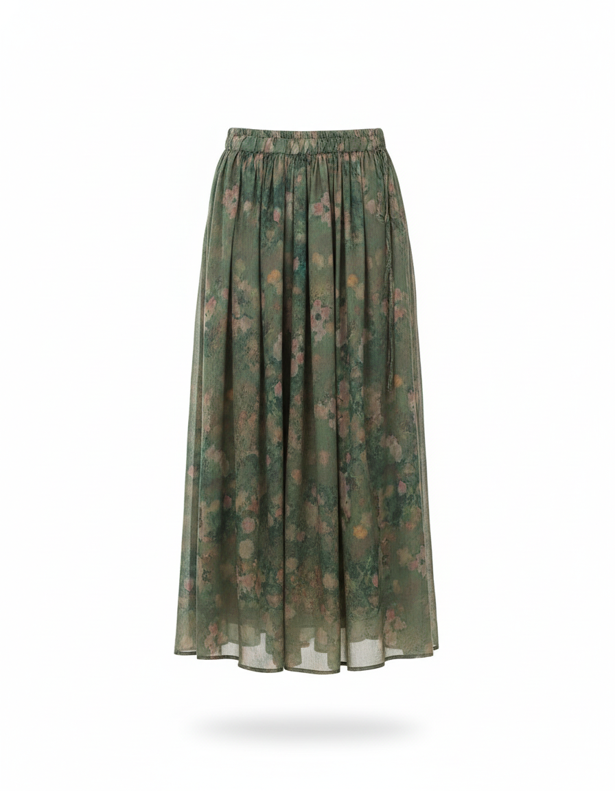 Ce qui distingue véritablement cette jupe, c'est son imprimé floral vibrant et unique, évoquant une toile de maître aux couleurs subtiles et profondes. Loin des motifs conventionnels, il confère à chaque jupe un caractère singulier et une profondeur visuelle captivante. La fluidité incomparable de la mousseline de haute qualité assure un tombé parfait et une sensation aérienne sur la peau, la rendant indispensable pour une élégance sans effort. Affirmez votre singularité avec une pièce qui allie l'exclusivité d'un design haut de gamme à la poésie d'un style bohème contemporain.
