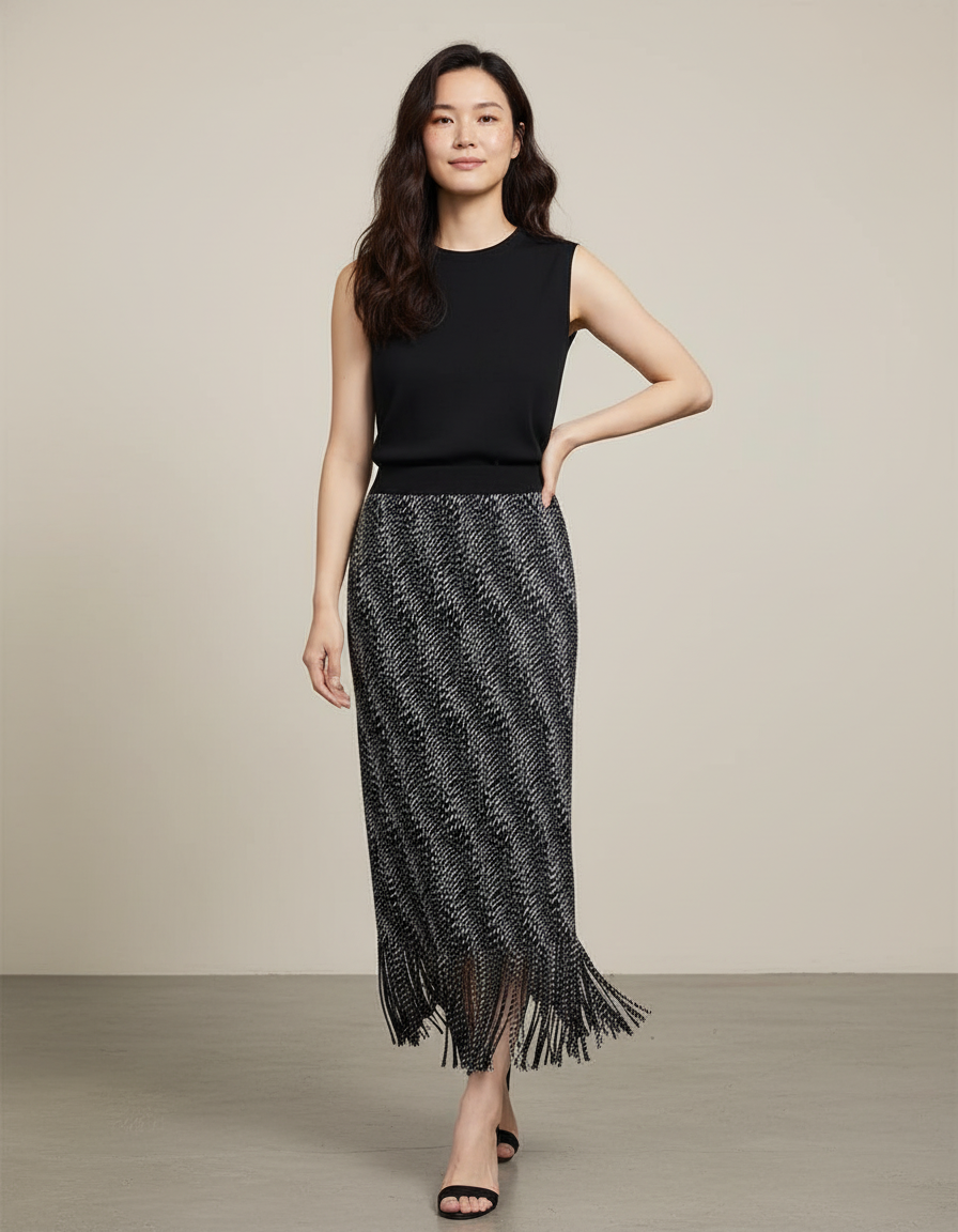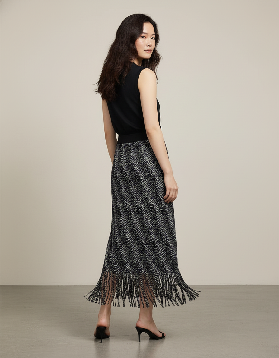 Jupe Longue Imprimée Franges Élégante : L'Allure Fluide et Audacieuse