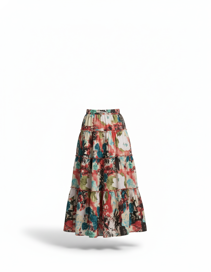 Idéale pour la femme moderne qui valorise l'authenticité et l'élégance naturelle, cette jupe se distingue par son motif exclusif et sa conception en volants, créant un volume gracieux et une silhouette flatteuse. Que ce soit pour une escapade ensoleillée, un brunch citadin ou une soirée décontractée, elle vous assure une allure distinguée et singulière. Osez affirmer votre personnalité avec cette pièce unique qui transcende les tendances, vous offrant un luxe discret et une confiance rayonnante.