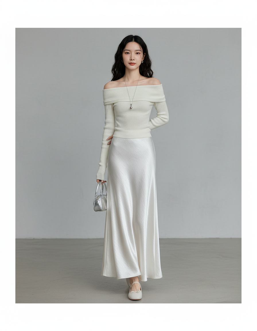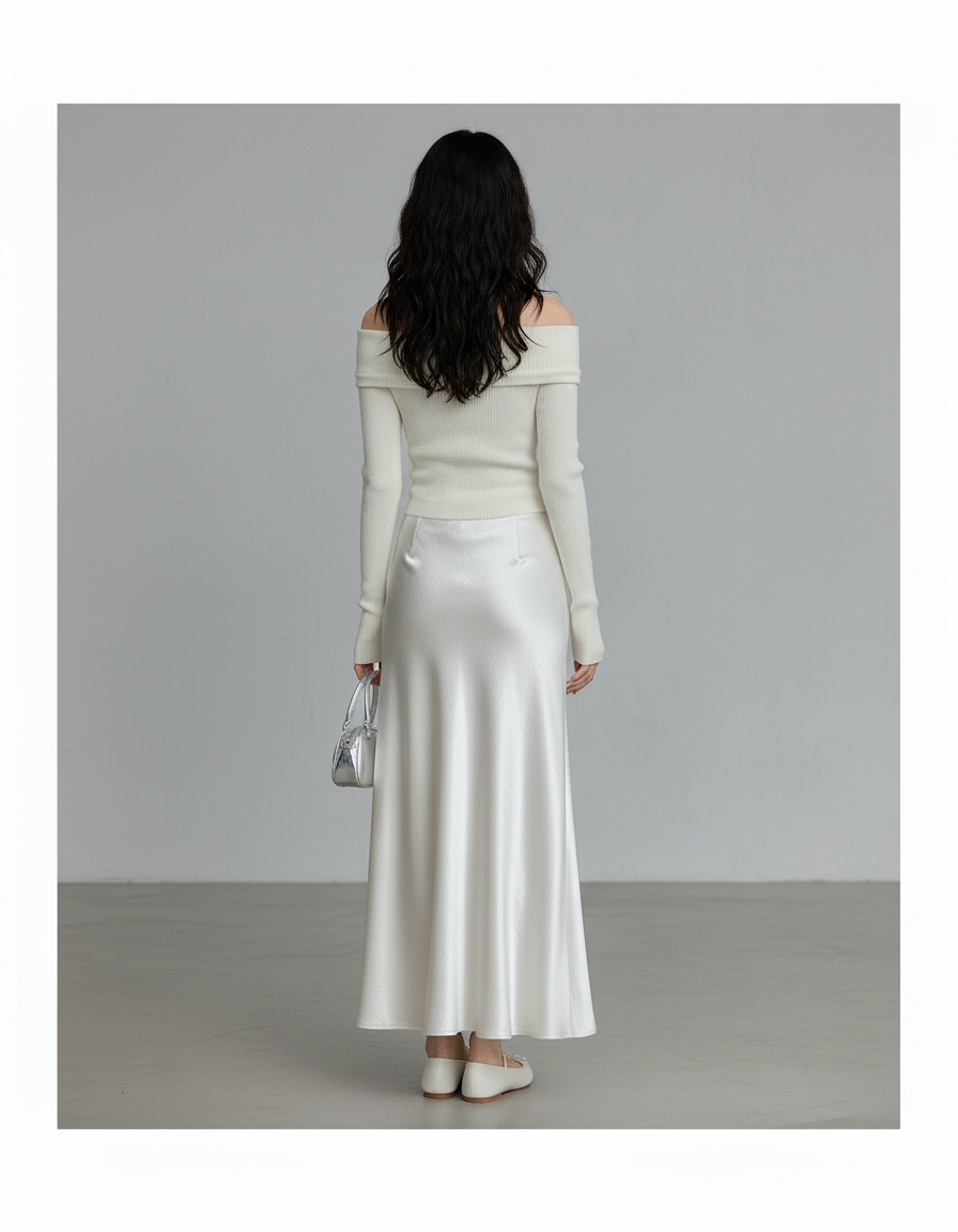 Jupe Longue Ivoire Satinée Élégante : L'Éclat Discret d'un Luxe Quotidien