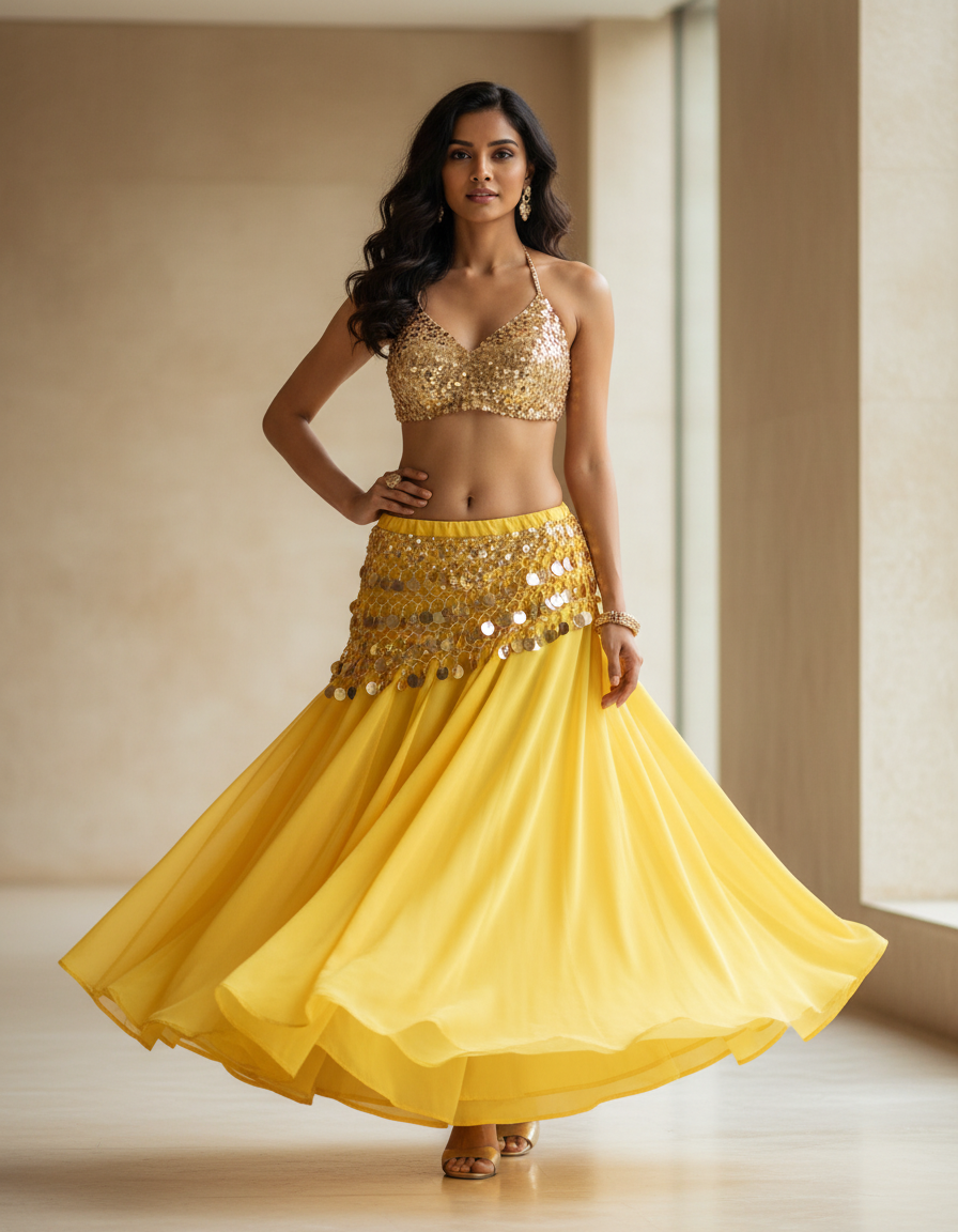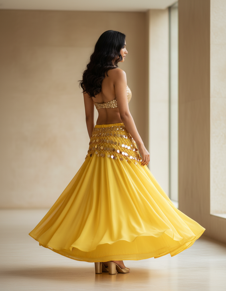 Sa polyvalence en fait un incontournable pour diverses occasions. Pour un look festif et traditionnel inspiré des célébrations indiennes, associez-la à un crop top brodé ou un choli scintillant, rehaussé de bijoux dorés pour un éclat maximal. Pour une élégance plus discrète au quotidien, mariez-la avec un chemisier blanc fluide et des sandales plates, idéal pour un brunch ensoleillé ou une sortie estivale. La teinte jaune vibrante apporte une touche de gaieté et d'originalité, s'adaptant harmonieusement aux événements diurnes comme aux soirées raffinées. Elle est la promesse d'un style qui allie confort, mouvement et sophistication.