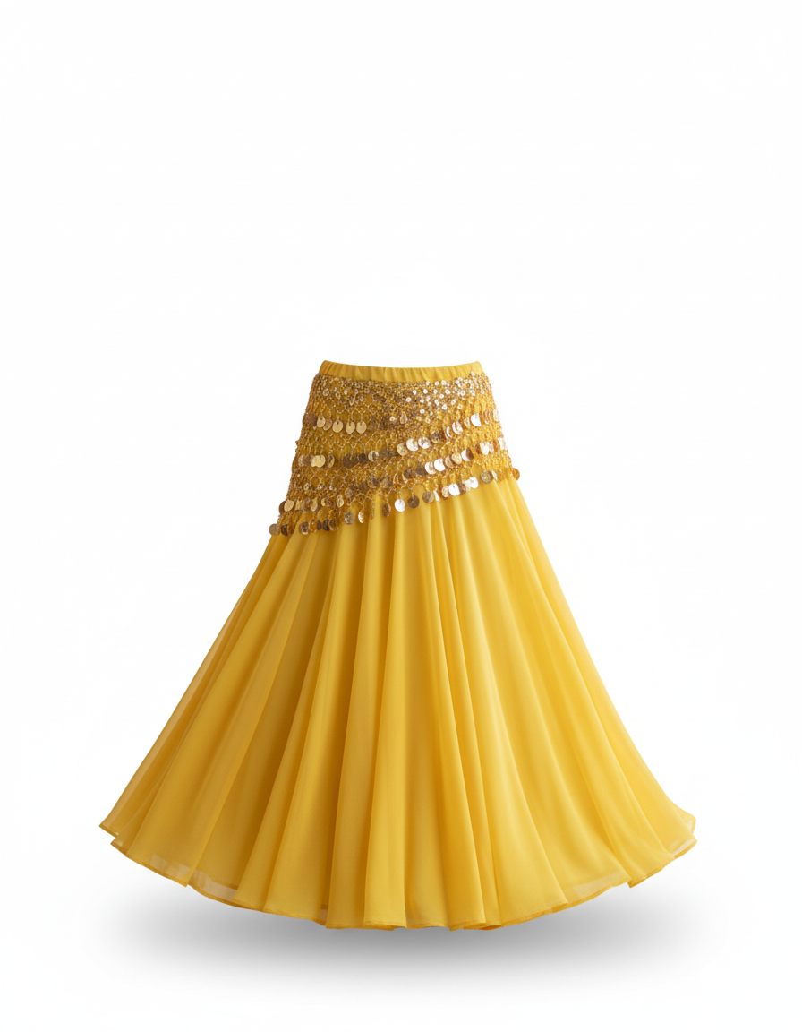 Jupe Longue Jaune Ample Fluide avec ceinture à sequins