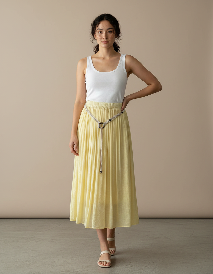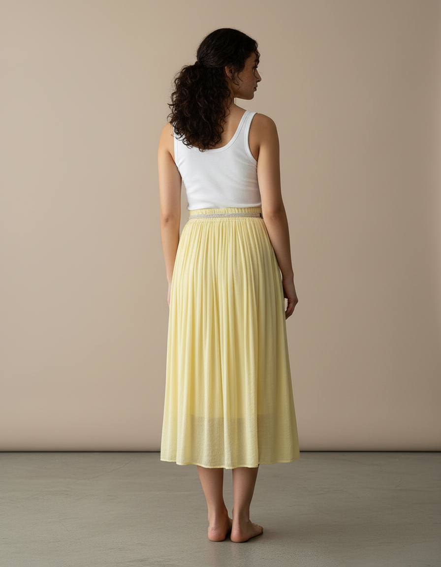 L'Élégance Estivale Réinventée : La Jupe Longue Jaune Beurre