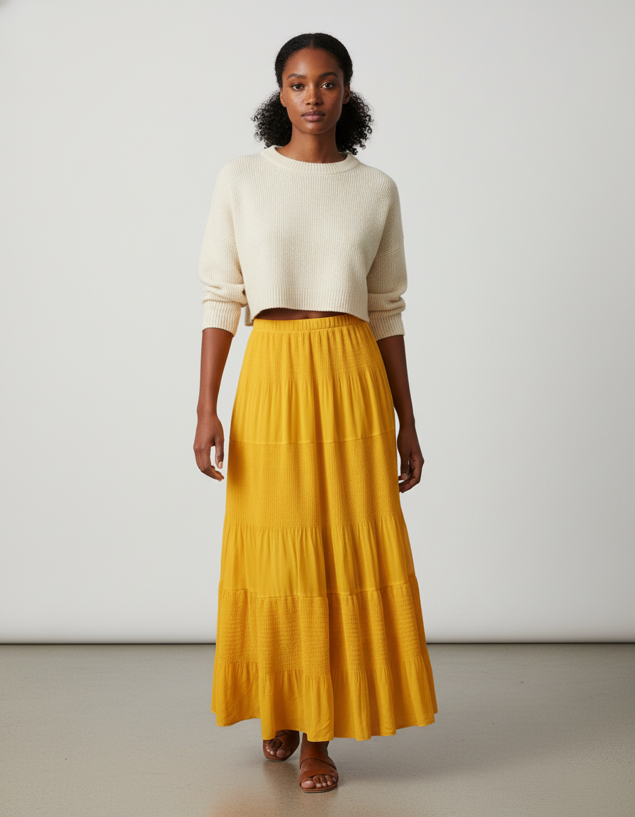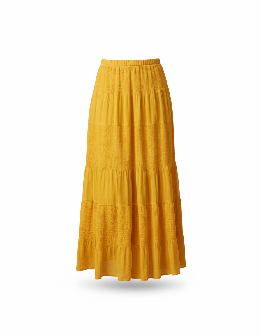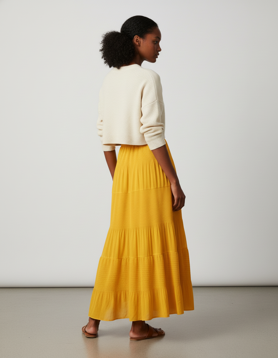 Jupe Longue Jaune Étagée Fluide : L'Éclat d'une Élégance Naturelle