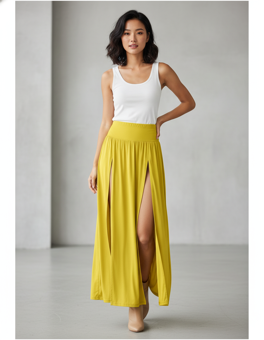 Jupe Longue Jaune Fendue Fluide : L'Élégance Audacieuse