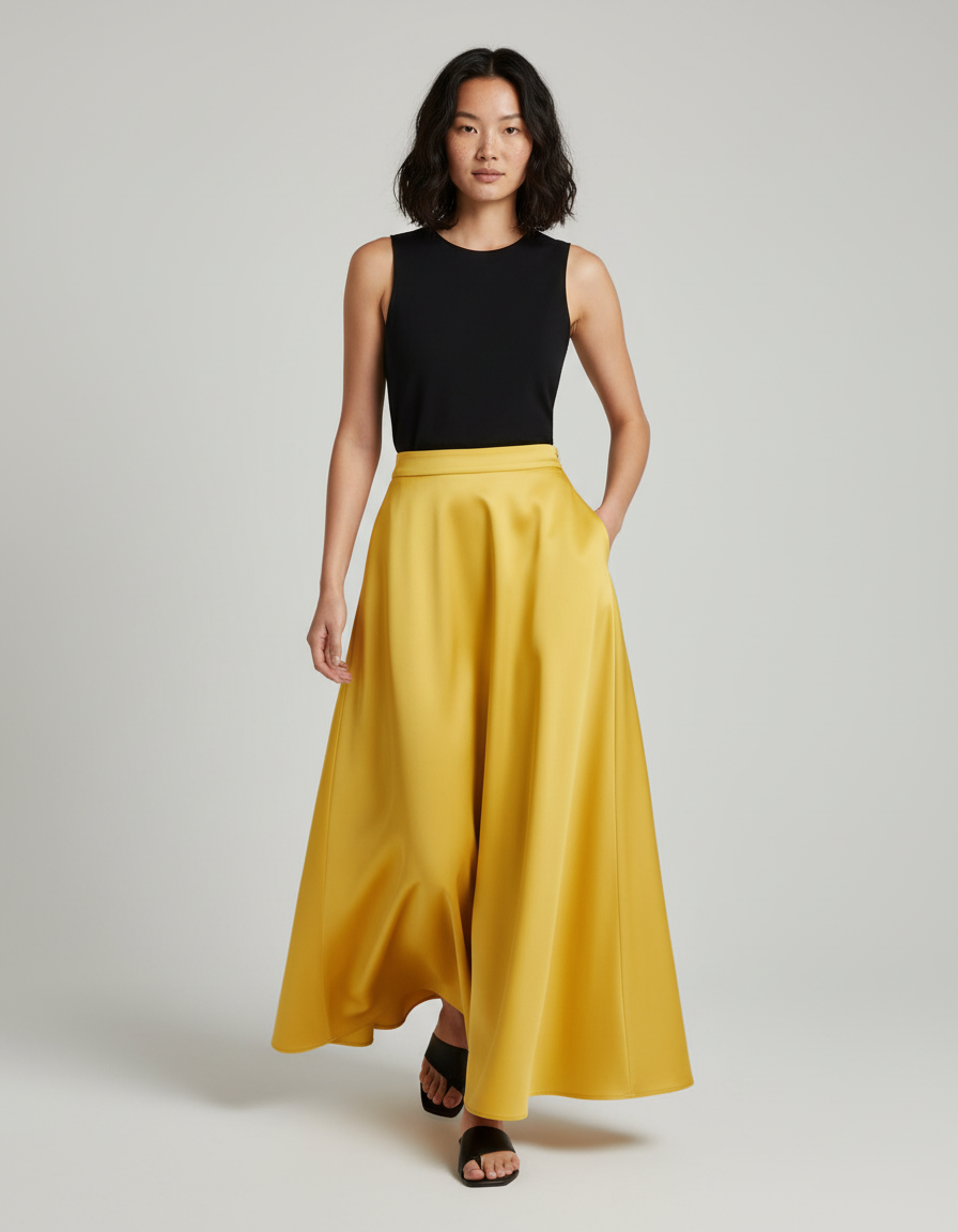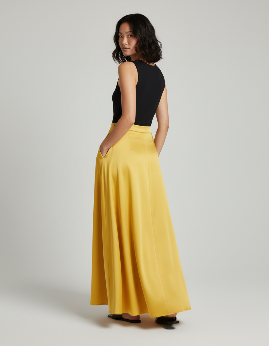 Comment entretenir votre Jupe Longue Jaune Satinée Fluide