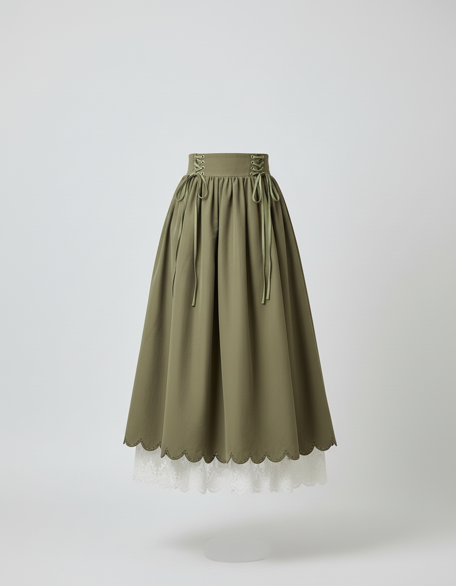 Jupe Longue Kaki Taille Lacée Vintage : L'Élégance Redéfinie