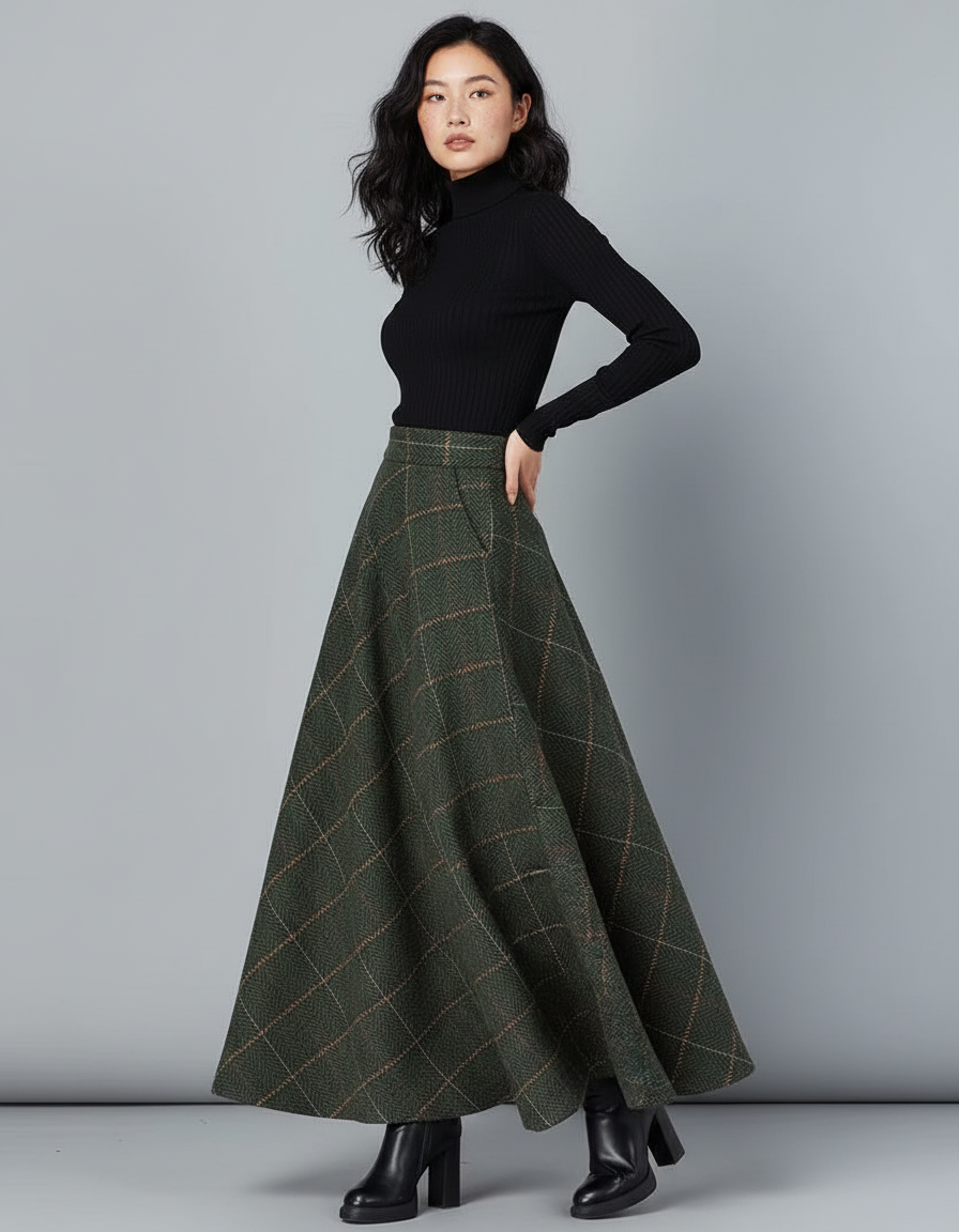 Maîtrisez l'Hiver avec Style et Confort : Notre Jupe Longue en Laine à Carreaux