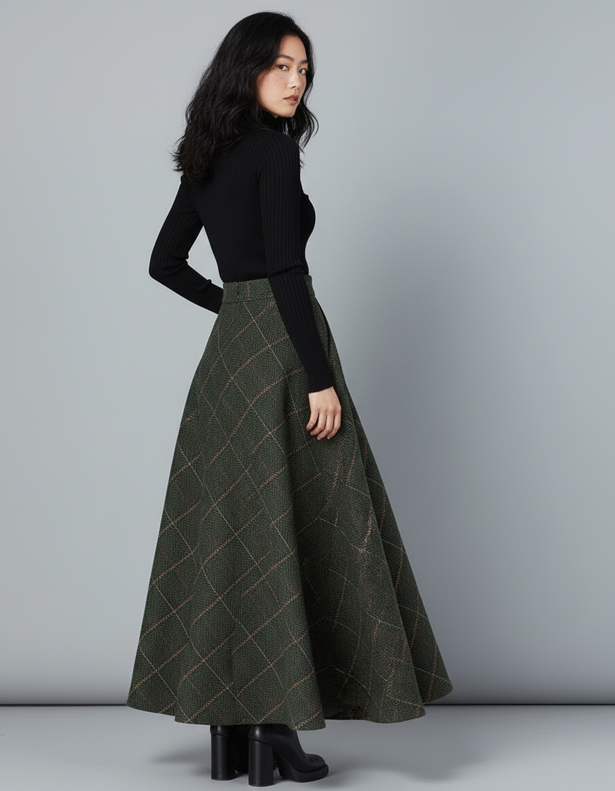 Jupe Longue Laine À Carreaux Élégante : L'Art de l'Allure Fluide