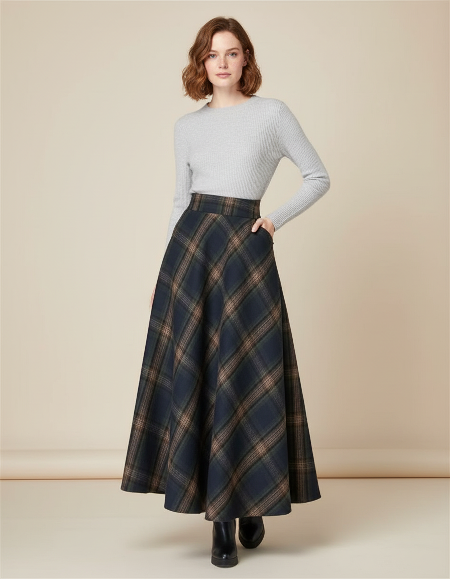 La Jupe Longue en Laine à Carreaux : L'Élégance Redéfinie pour la Femme Moderne