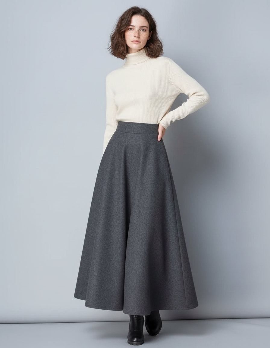 Jupe Longue Laine Évasée : L'Élégance Hivernale au Sommet du Confort