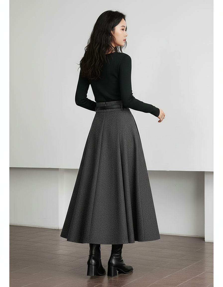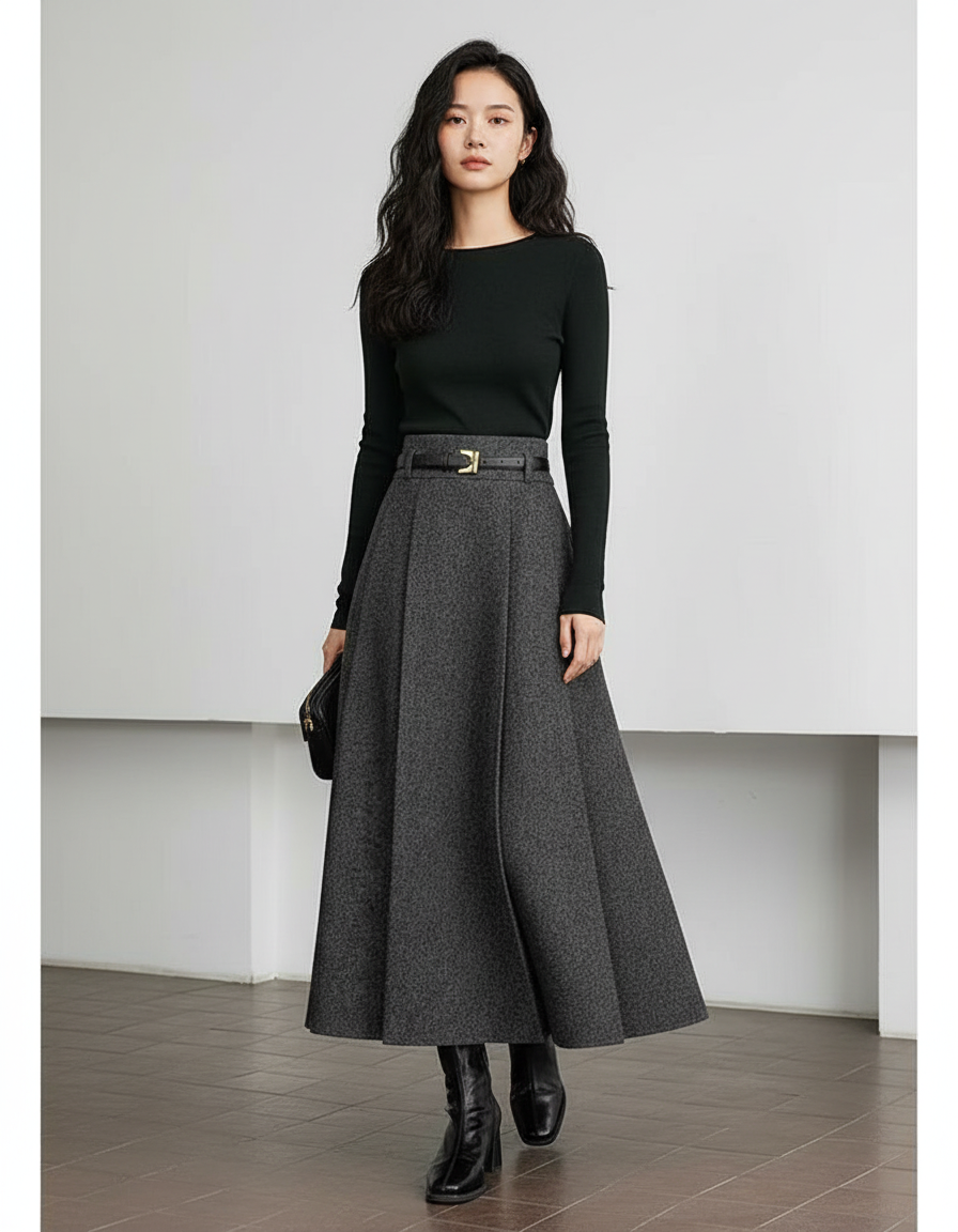 L'Élégance Hivernale Redéfinie : Votre Jupe Longue en Laine Plissée