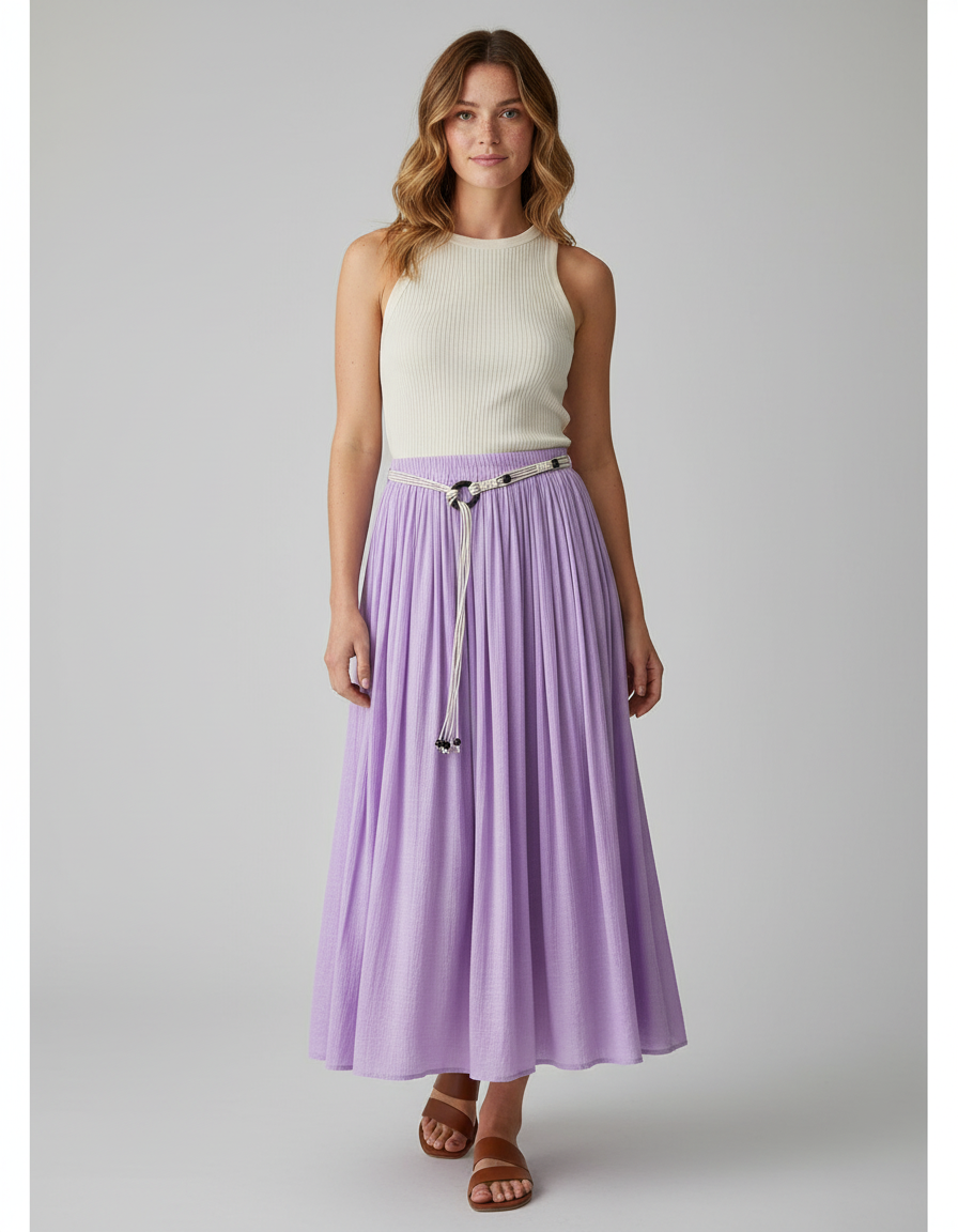 Jupe Longue Lavande Plissée Fluide : L'Élégance en Mouvement
