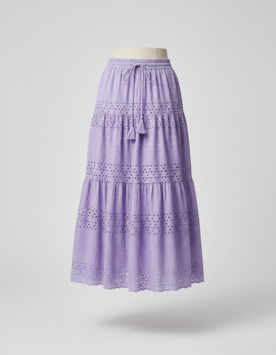 Jupe Longue Lila Broderie Anglaise Élégante avec détails en broderie anglaise