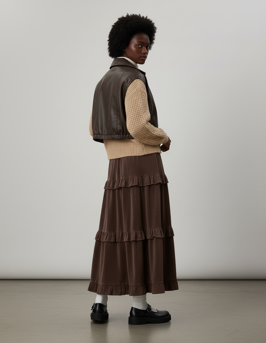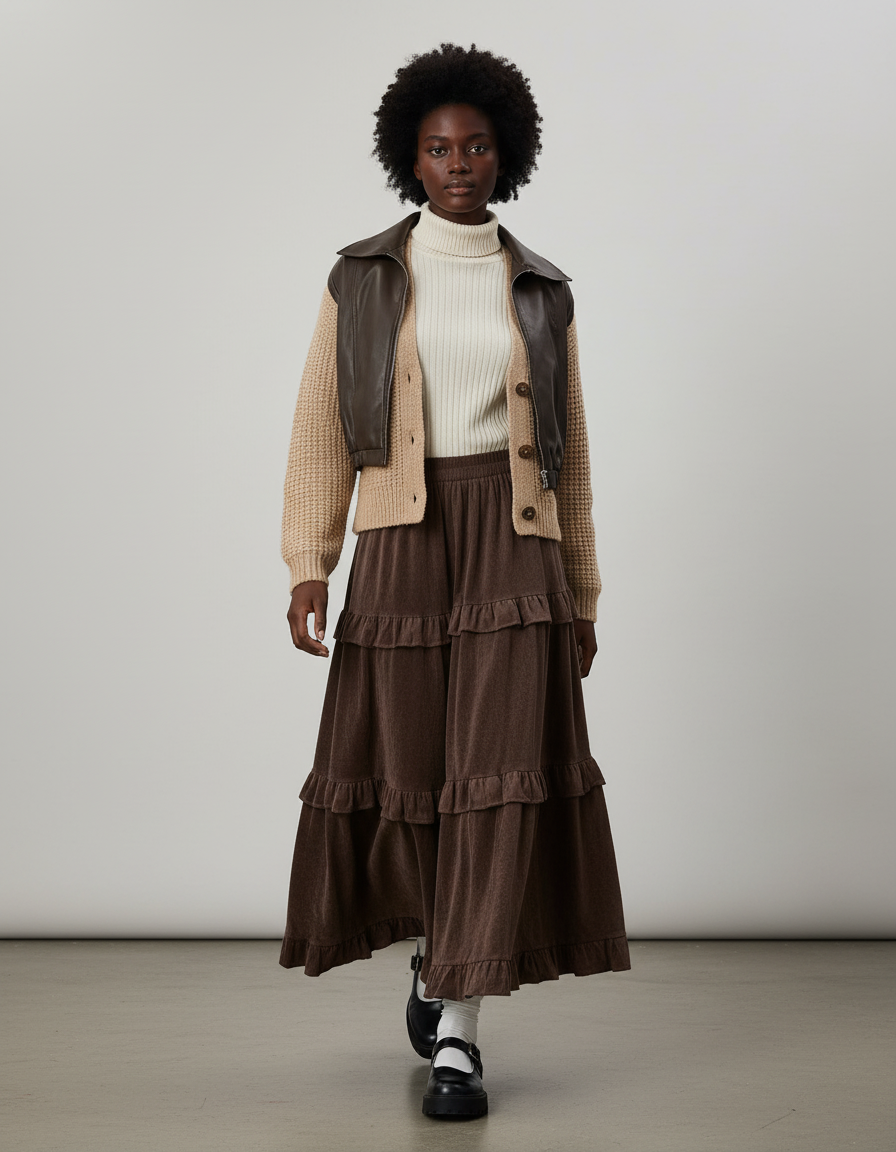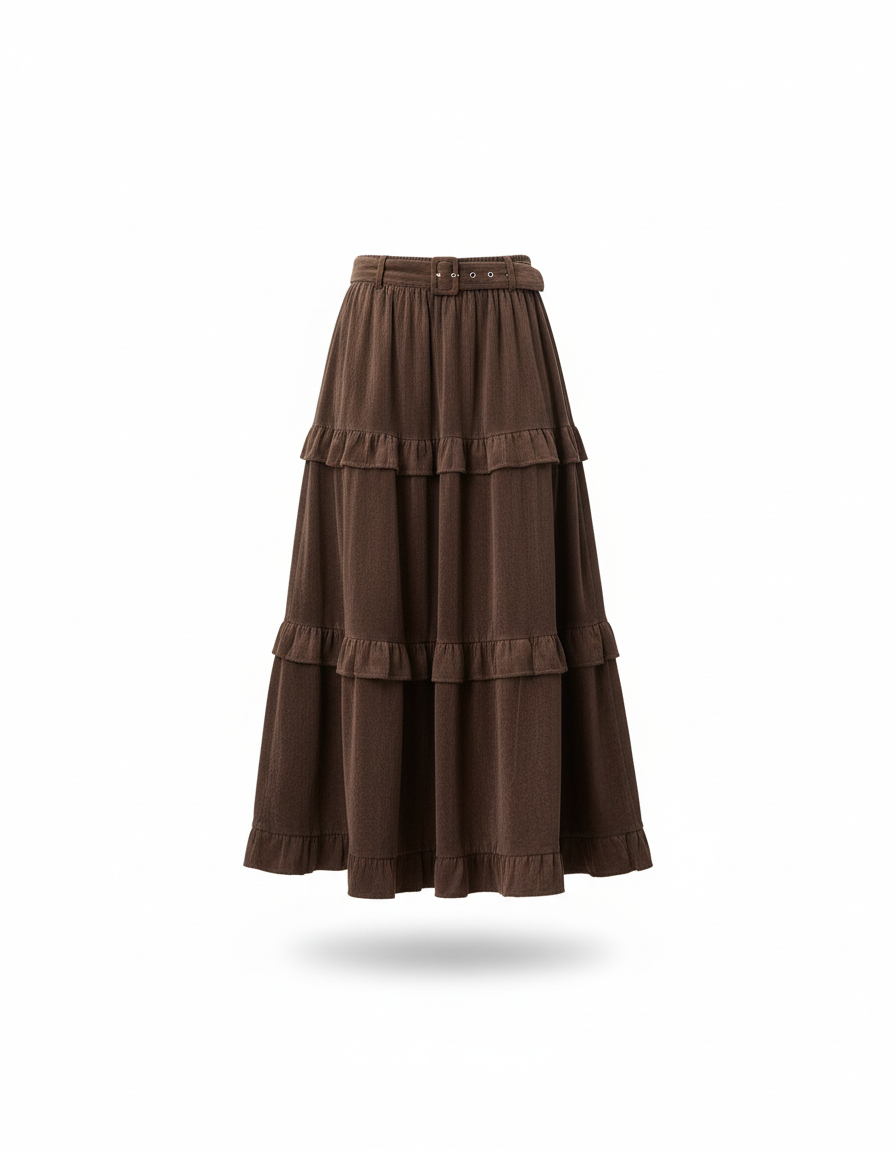Jupe Longue Marron À Volants Élégante : L'Essence du Luxe Décontracté