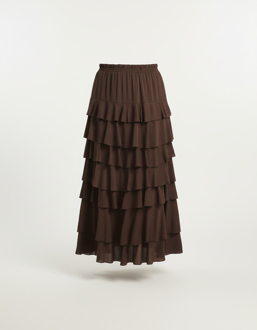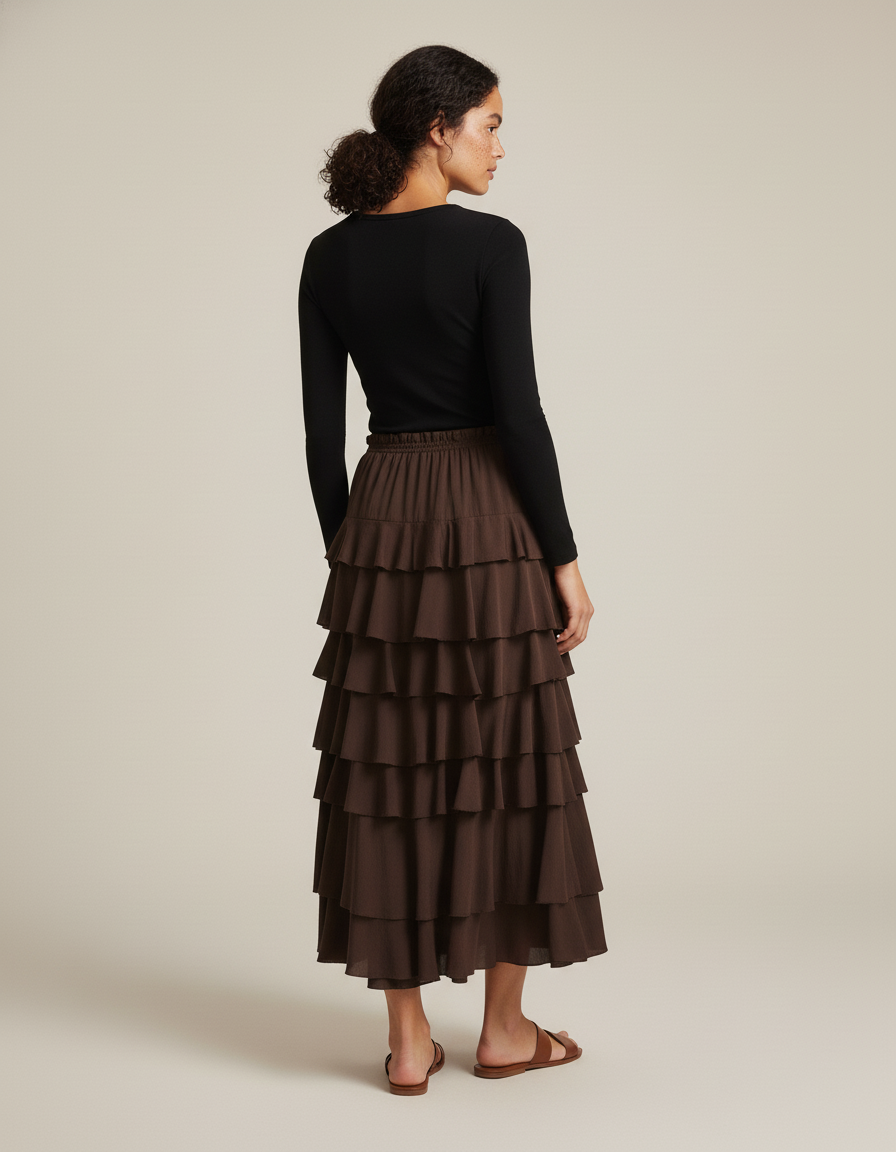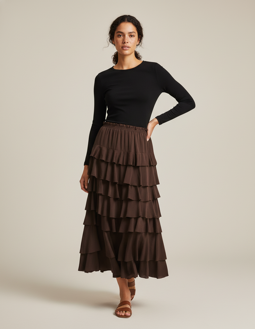 Jupe Longue Marron À Volants Fluide : L'Élégance Redéfinie