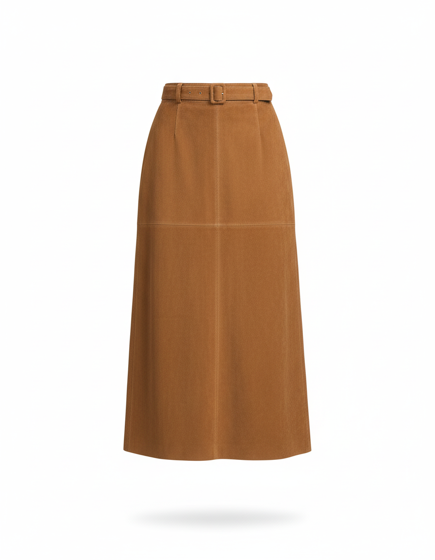 Élevez votre style avec cette jupe longue en daim marron, parfaite pour une allure sophistiquée et tendance.