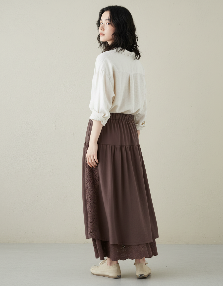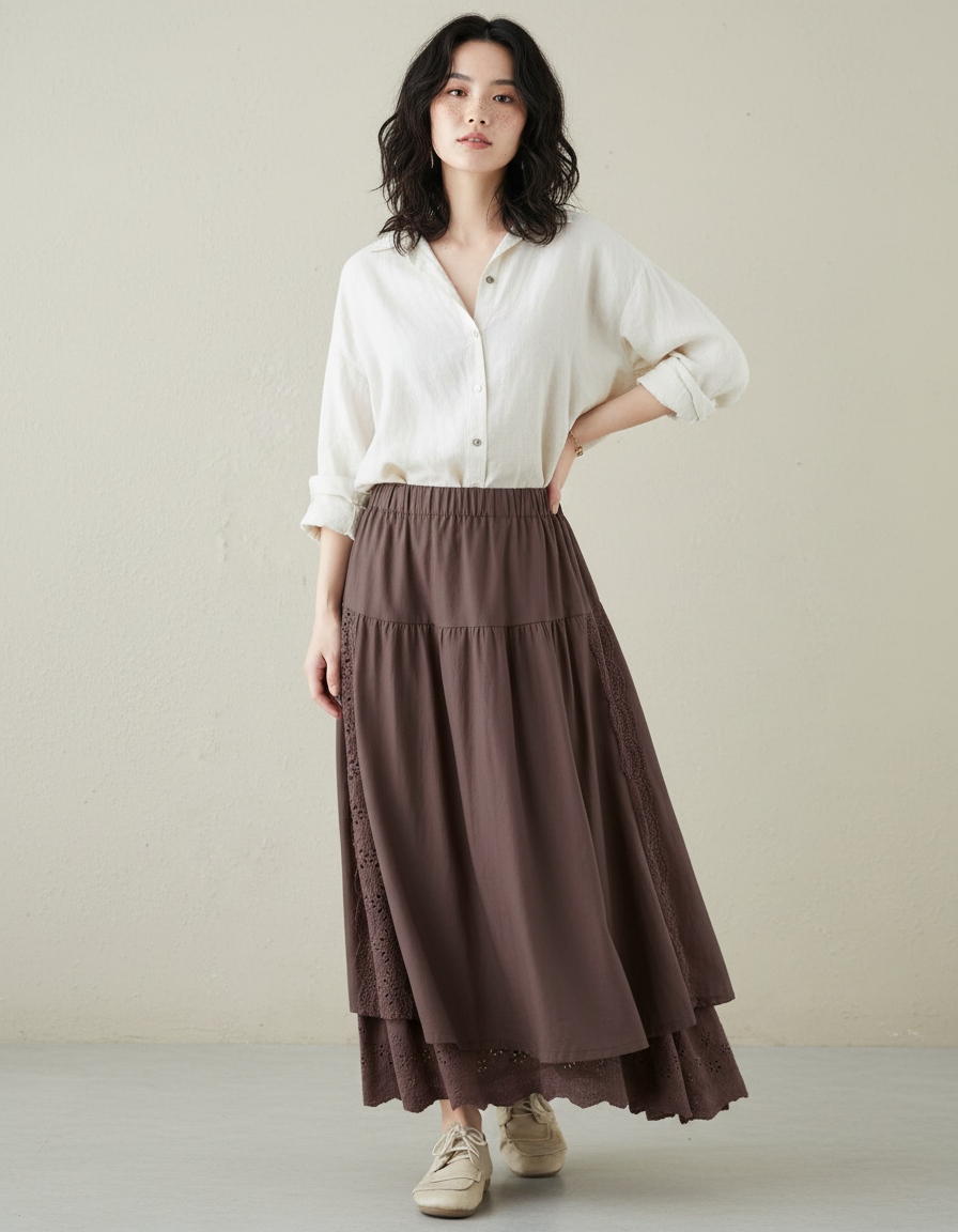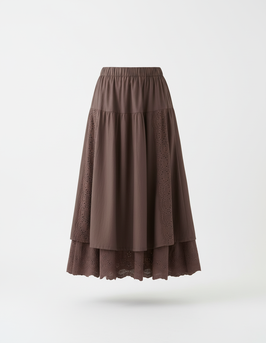 Jupe Longue Fluide Marron Dentelle : L'Élégance en Mouvement