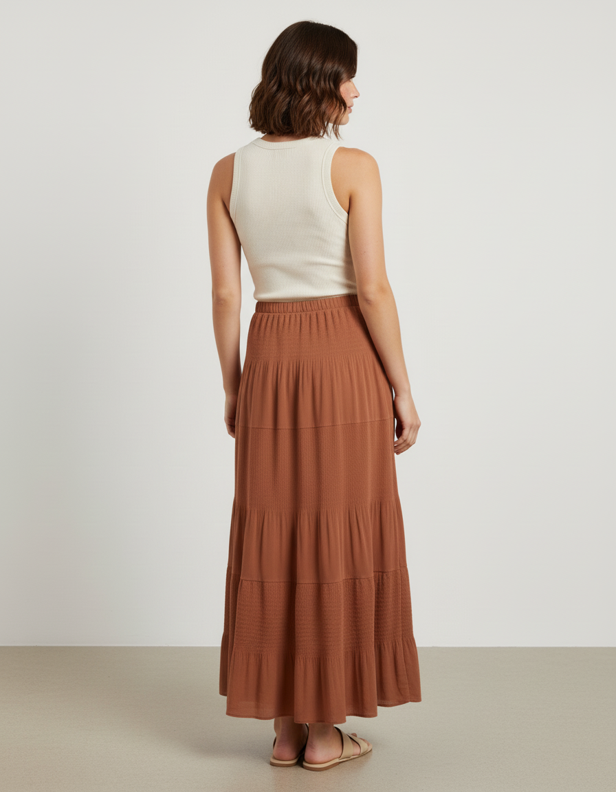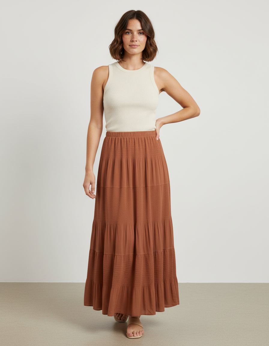 Jupe Longue Marron Étagée Fluide : L'Élégance Décontractée Réinventée