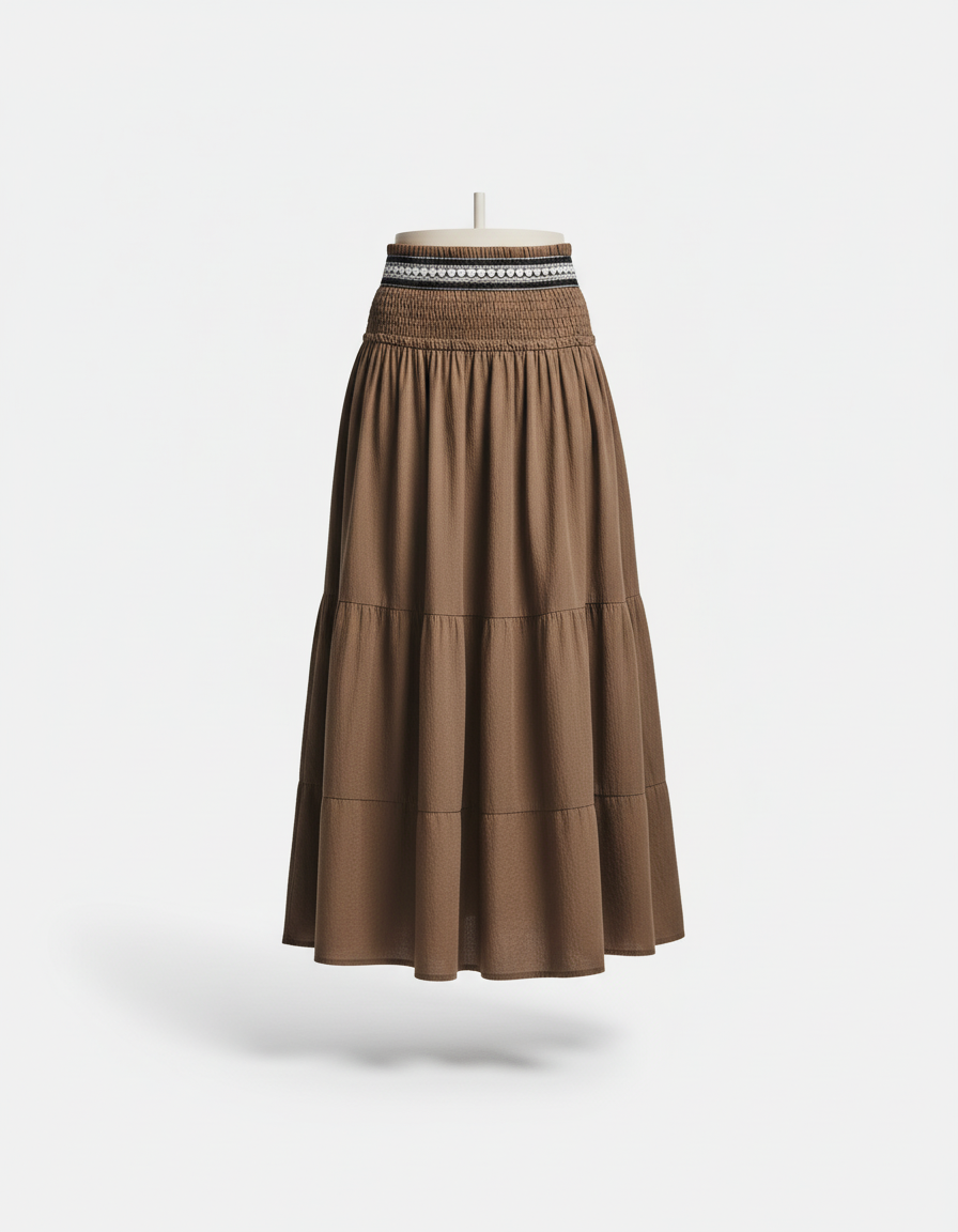 Jupe Longue Marron Fluide Bohème : Description Générale