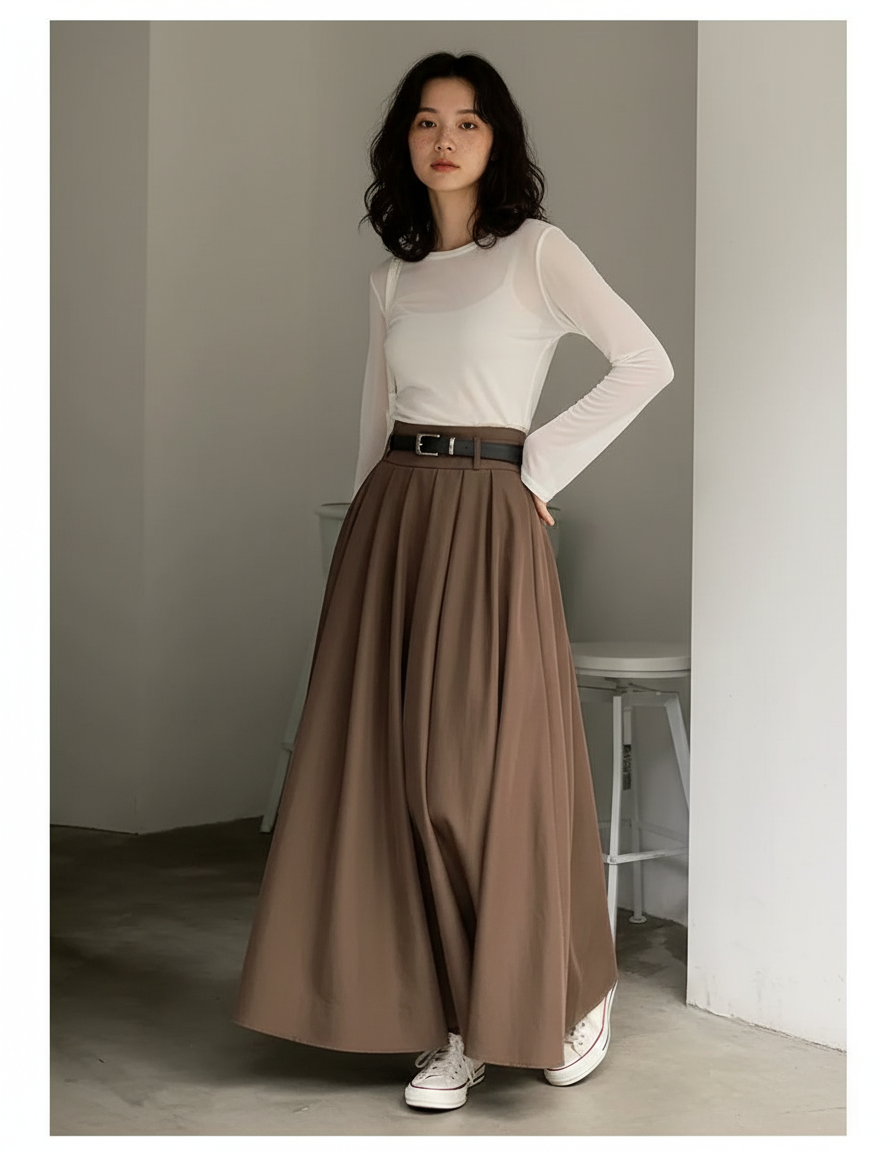 Jupe Longue Marron Fluide Élégante : L'Art de la Décontraction Raffinée